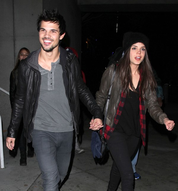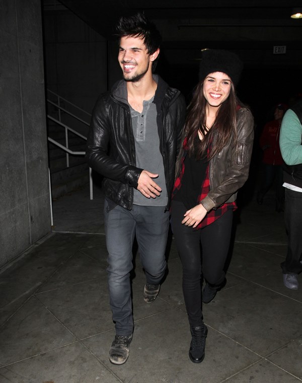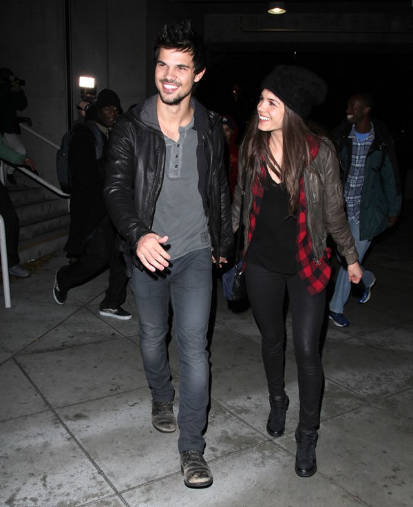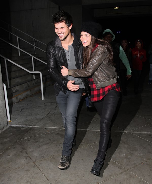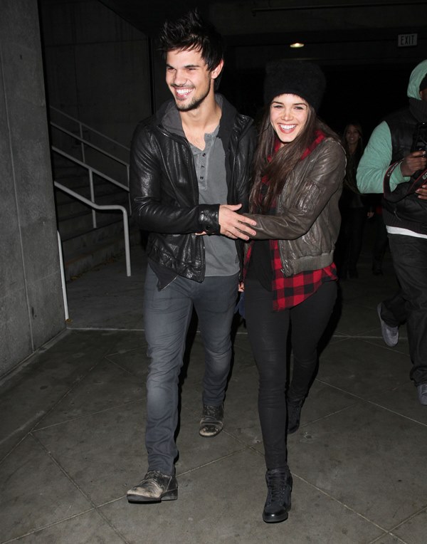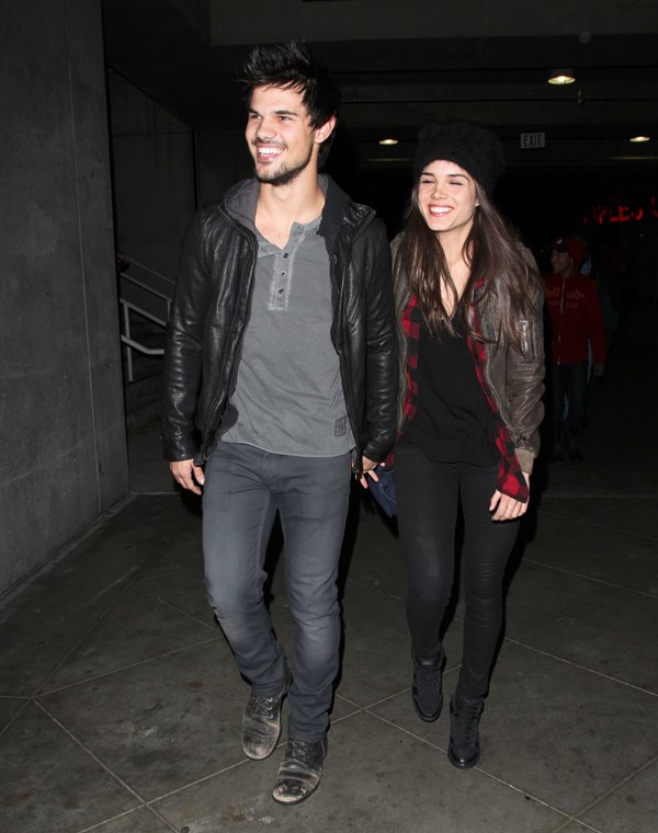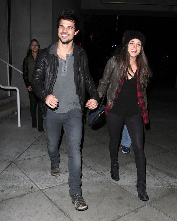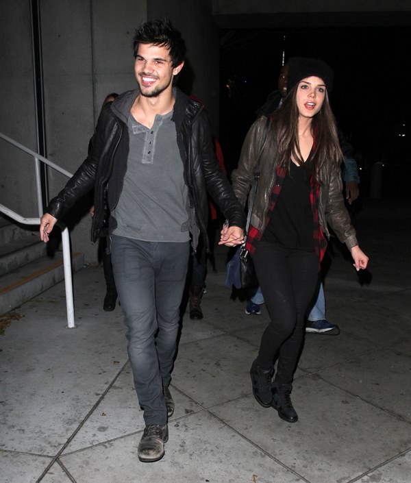 Lautner started dating his Tracers co-star Marie Avgeropoulos in the summer during production. Last night they were photographed holding hands leaving the Jay Z show at Staples Centre. They’ve kept their relationship on the low since wrapping the movie. Very few sightings, very little whoring. Both haven’t worked since Tracers either. So, even if they’ve only been dating 6 months on a regular calendar, in celebrity time, it’s more like 2 years.