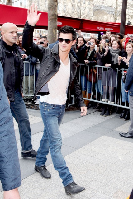Not really sure why he gets a solo promotional tour. Perhaps he’ll be busy when the press obligations for Twilight Eclipse take over the universe but that seems unlikely. Why wouldn’t they want their #3 on board during the onslaught? I don’t have intimate knowledge of his schedule and his strategery. But I’ve not doubt part of it has to do with wanting to portray Taylor as a big boy now. A big boy who can go out all by himself away from the shadow of Kristen Stewart and Robert Pattinson.