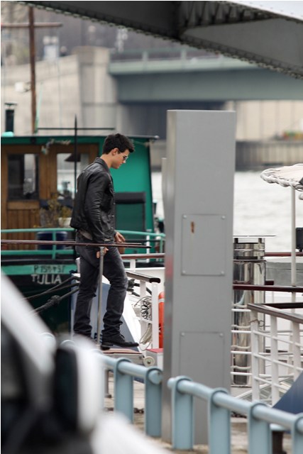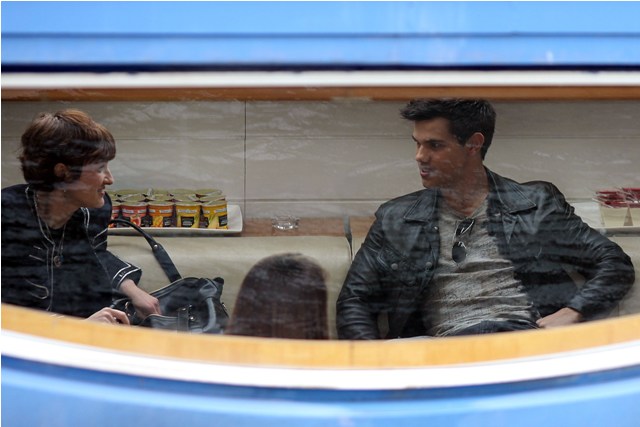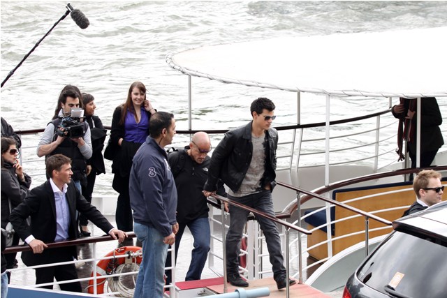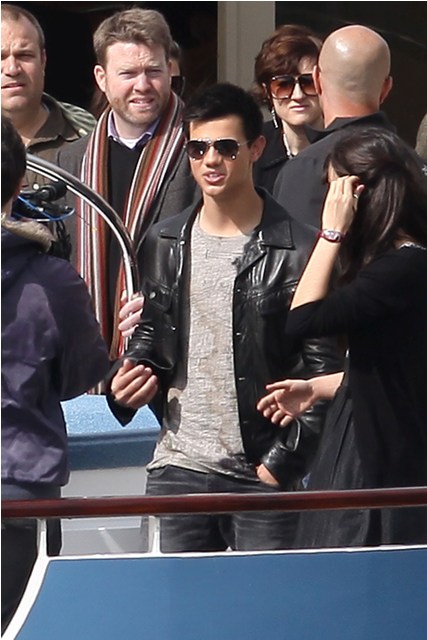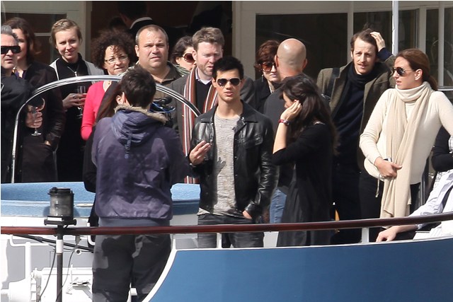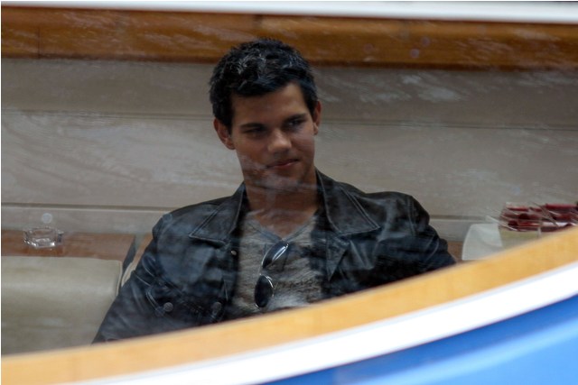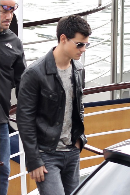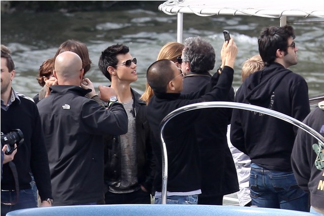 A young woman won the big prize and they went on a boat ride together down the Seine. Looks like there was a camera crew following them around too. Oh fun. Young Taylor gets to spend his free time not working with people who enter contests to meet him. Well, actually, that’s work too isn’t it? So when does he not work? When does he chill with his boys? Does he have boys?