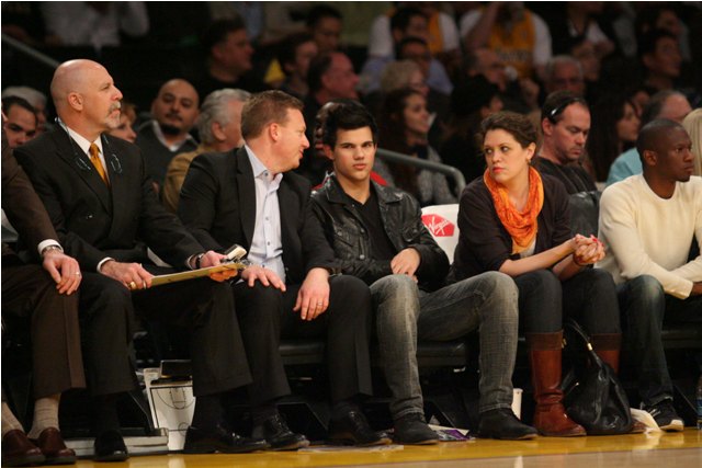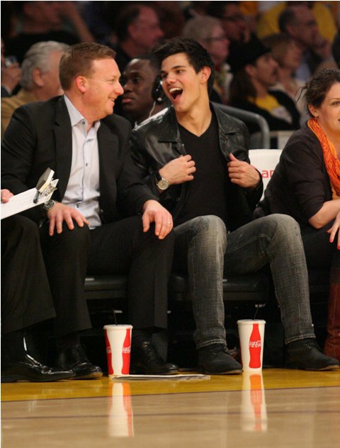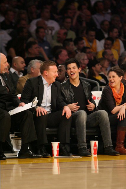 Taylor Lautner turns 18 next week. Last night he was sitting courtside at the Lakers game. Seems like a normal famous teen Wednesday night activity, right? Sure, totally normal. Except he was with adults. Surrounded by adults. A 17 year old who never seems to have any friends his own age. Aside from being photographed on dates with Taylor Swift, how often does he roll with a younger crowd? Where are his friends?