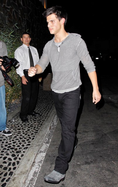 Gay rumours have been swirling about Taylor Lautner. Something about his allegedly homoerotic shopping trip with a dude, and then his cryptic remarks in Rolling Stone about his sexual identity. Click here for more details including a denial from Lautner’s rep. Of course it’s a denial from Lautner’s rep. They’re building a heartthrob. Nothing like a well timed set of candids with the reigning darling of the music business, fresh off 8 Grammy nominations, to quell the gay sniffing around their prized product.
