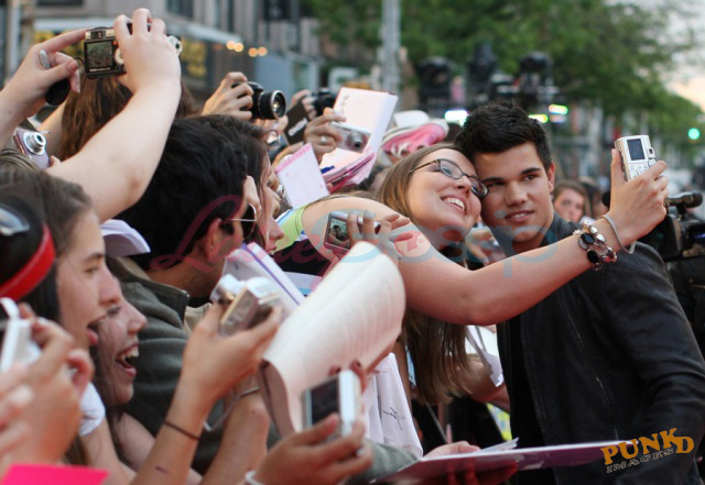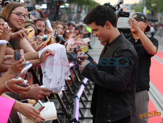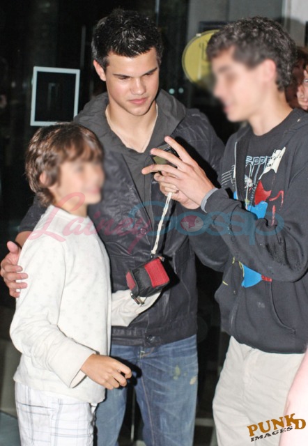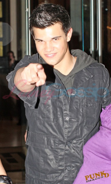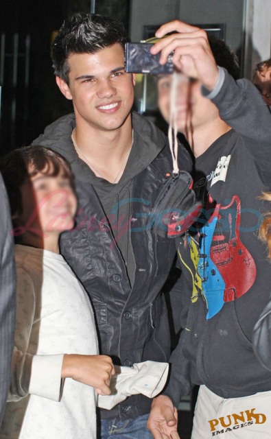 Saturday night Taylor hung out with Rachelle Lefevre but both also took time to sign autographs and pose for fans waiting outside the hotel.
