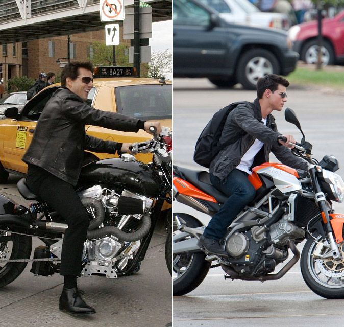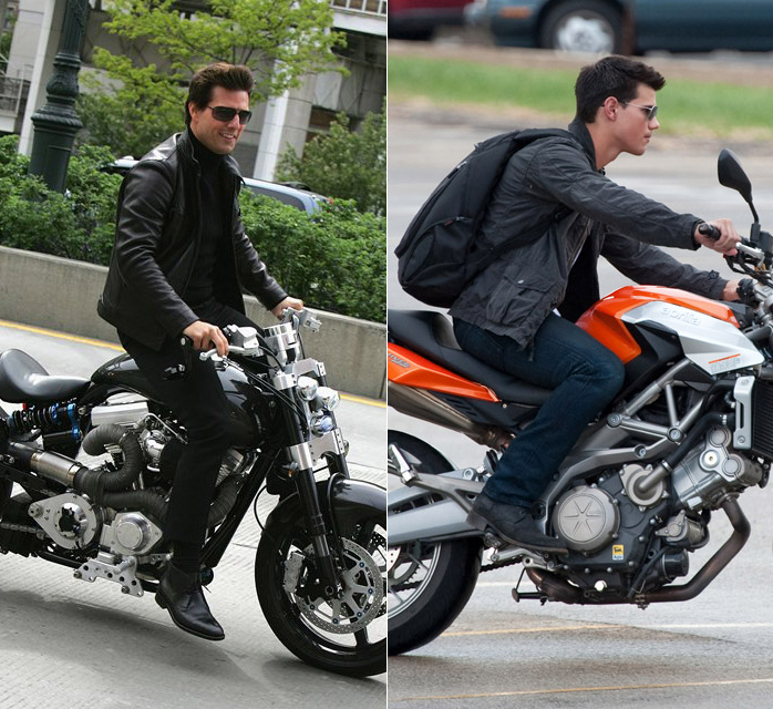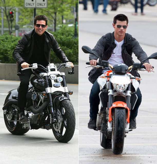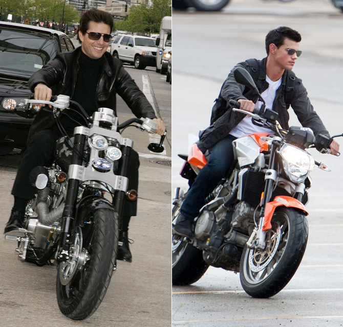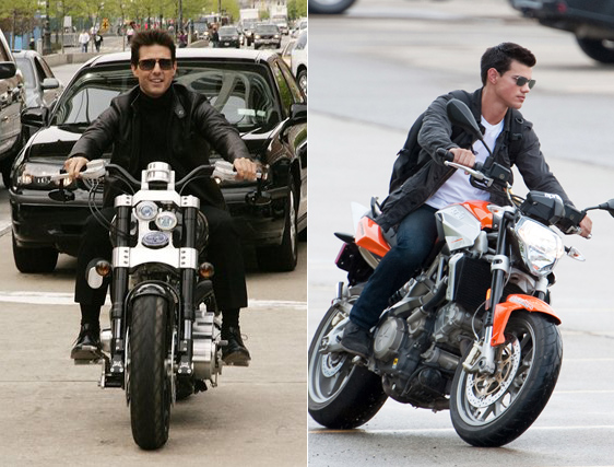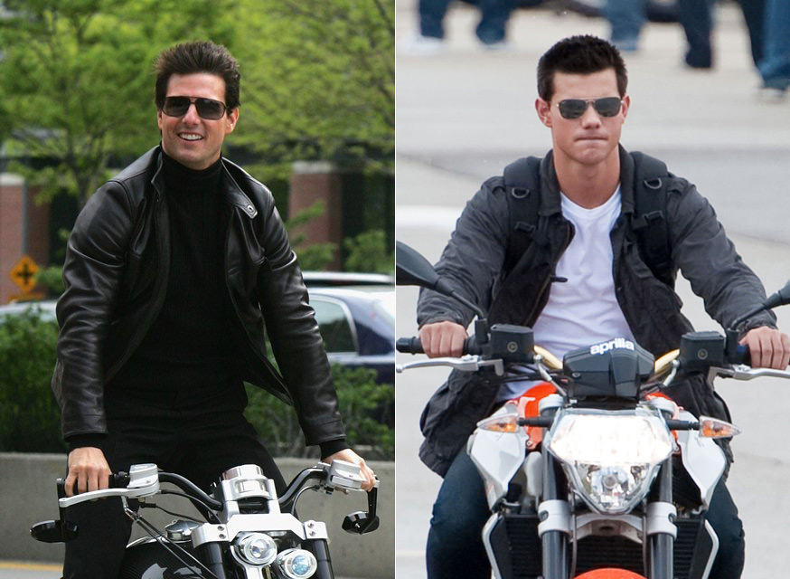 Tom Cruise at the Tribeca Film Festival premiere of Mission Impossible 3 in 2006 or Taylor Lautner in Pittsburgh yesterday shooting Abduction? Please. It’s everything. It’s the body type, it’s the mannerisms, it’s the overacting, it’s everything. And these days, Tom Cruise Jr has a bigger career than Tom Cruise Original. Perhaps he should start looking for father/son scripts, help save Tom.