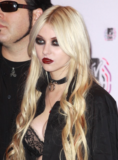 No disrespect to Europeans, but as I’ve always said, there’s a different benchmark for fame here. They get famous for less here (although I suppose with reality tv, it’s not a huge discrepancy anymore in North America) and they stay famous longer here. Taylor Momsen did something at the EMAs last night in Madrid. Probably presented. And her band was there too. Not sure why. This is unimportant. The point is that Taylor Momsen would not have been presenting at the VMAs. There’s no shortage of names at the VMAs. And letting her present as a “musician” would have been greeted with a giant, WHAT IN THE F-CK? Example: Eva Longoria hosted the EMAs this year. See?