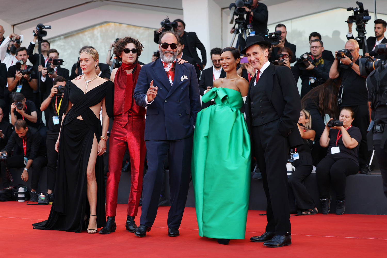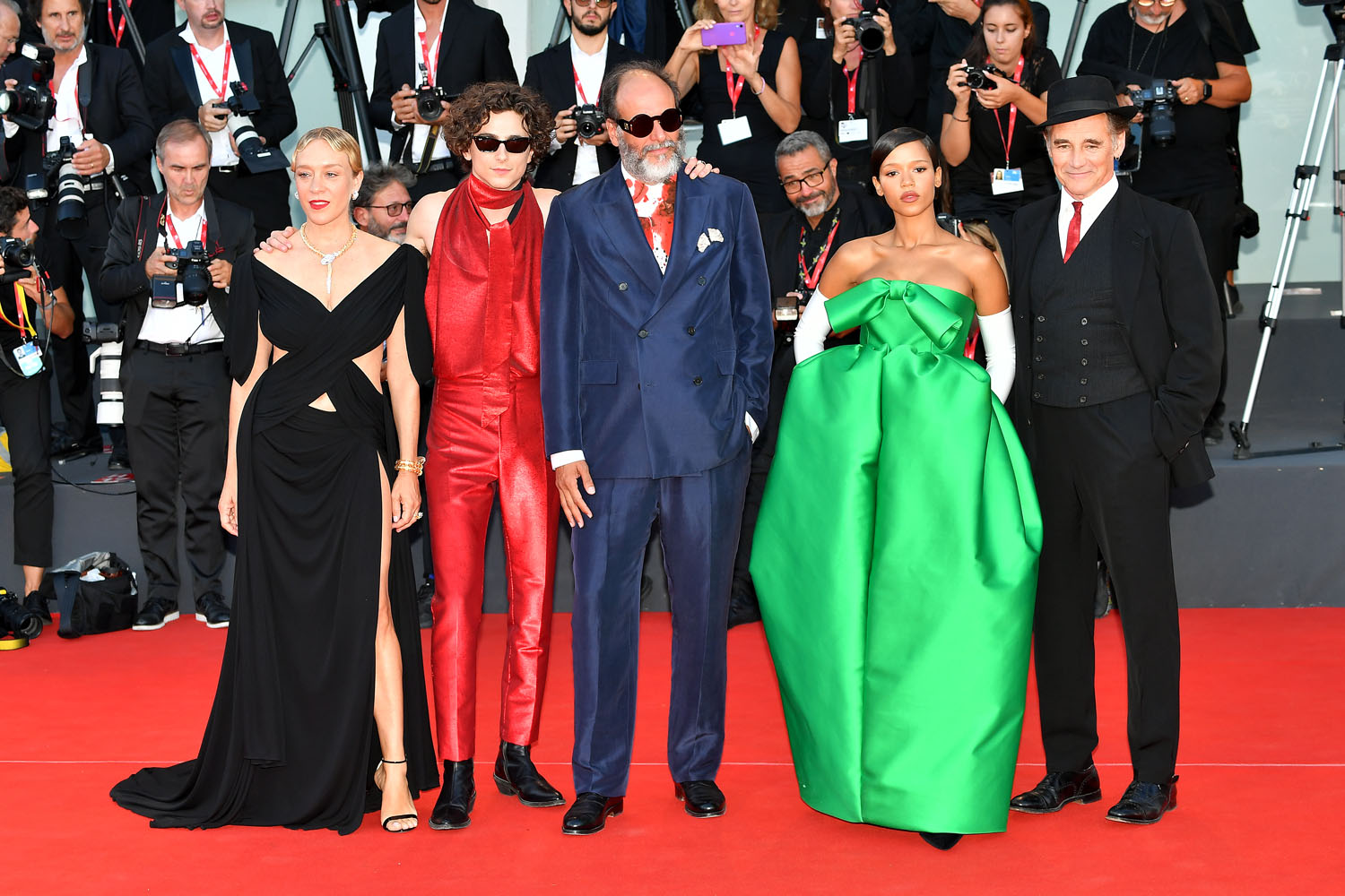 Even Mark Rylance, not typically known as a red carpet superstar, LOL, joined in on the style energy of his cast mates and came to play in his favourite jaunty black hat and skinny red tie, coordinating with both Luca and Timmy.