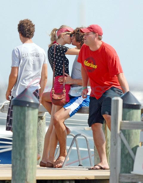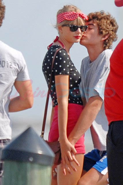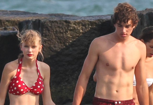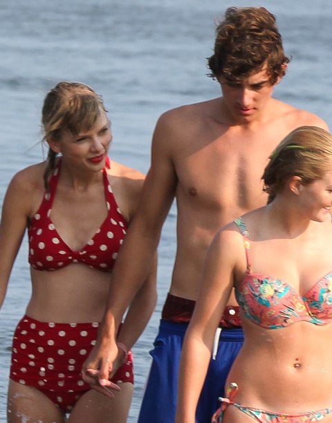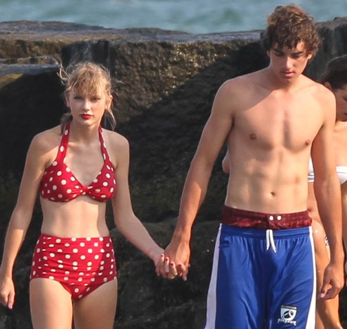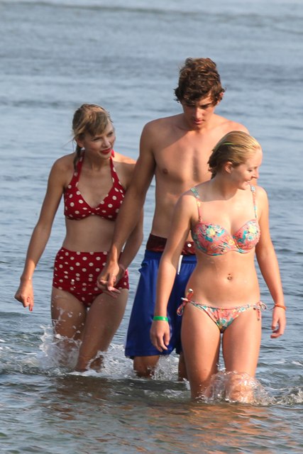 Here’s Taylor Swift with her boyfriend Conor Kennedy in Hyannis Port this weekend where, as you know, she’s purchased a home on the Kennedy Compound. They kissed on the boardwalk. They held hands in the surf accessorised by polka dots and headbands and hipster bathers because, I dunno, it wouldn’t do to pretend to be first lady in your mind if the whole world has seen you in a g-bikini.