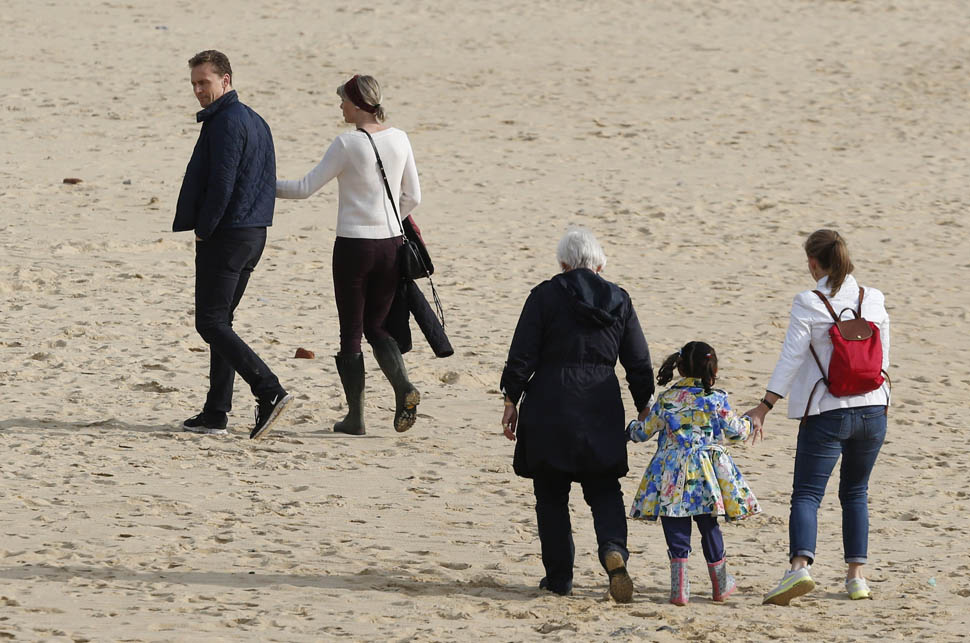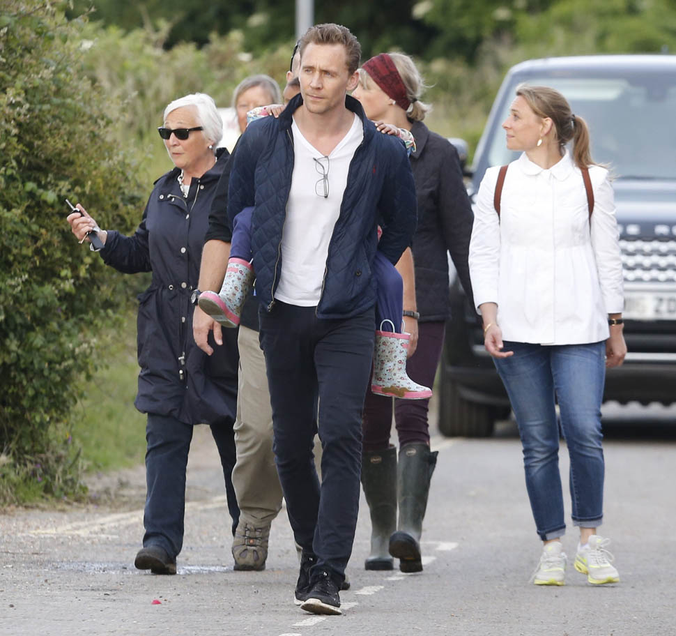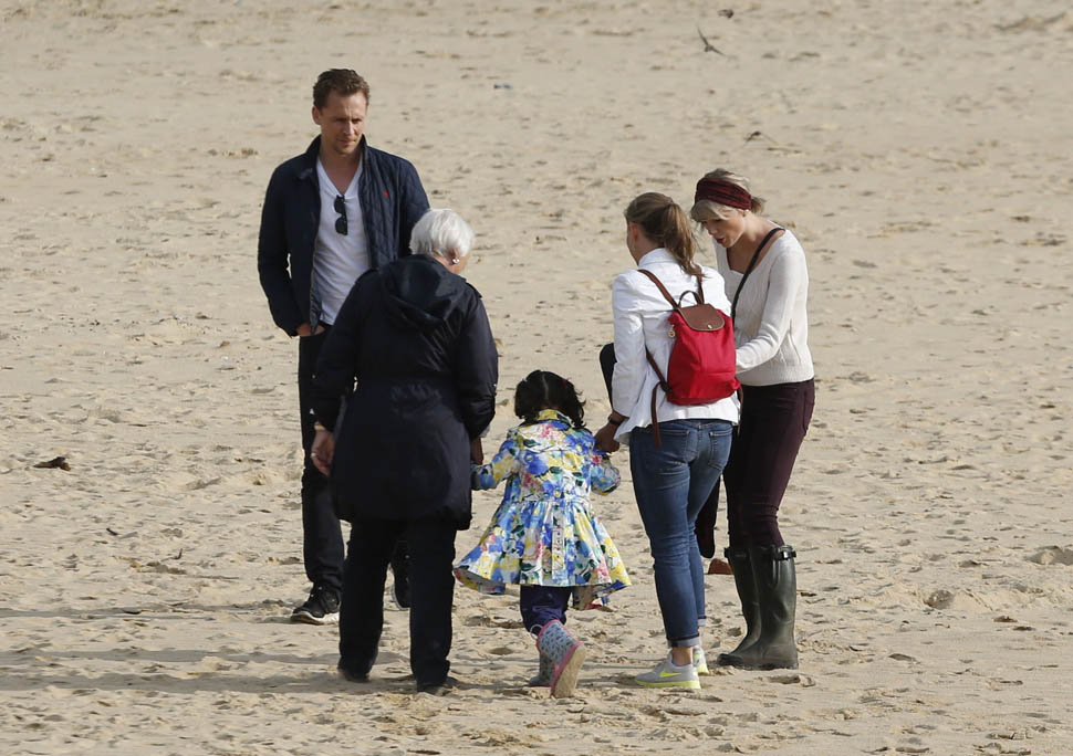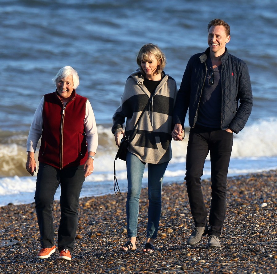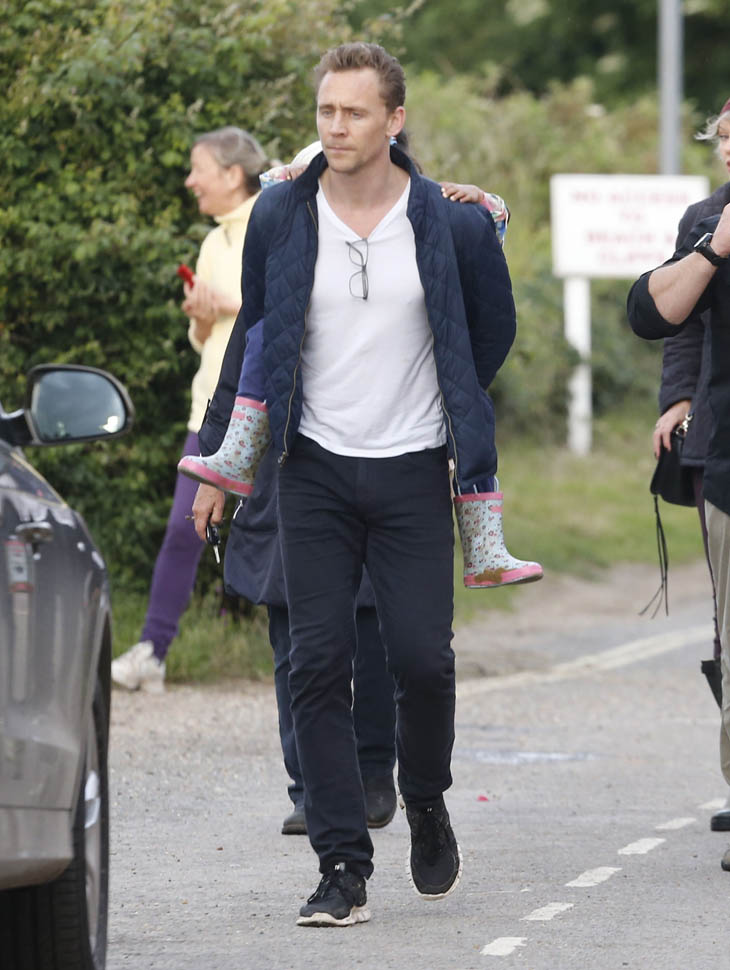There were several beach walks. There was a lot of family time. And look at him. He’s into it. There is zero escape face on him. Even in the presence of all the paps blocking the small town road, even as they’re being followed, HE’s not just a willing participant, he has to be driving this too. In fact, he might be driving most of it. Because it’s not like she’s forcing her way into his ma’s house. And he’s the one angling for an Emmy nomination (for The Night Manager) and a Bond title. He might have more to gain than she does. And, as we can see, he’s just as extra.