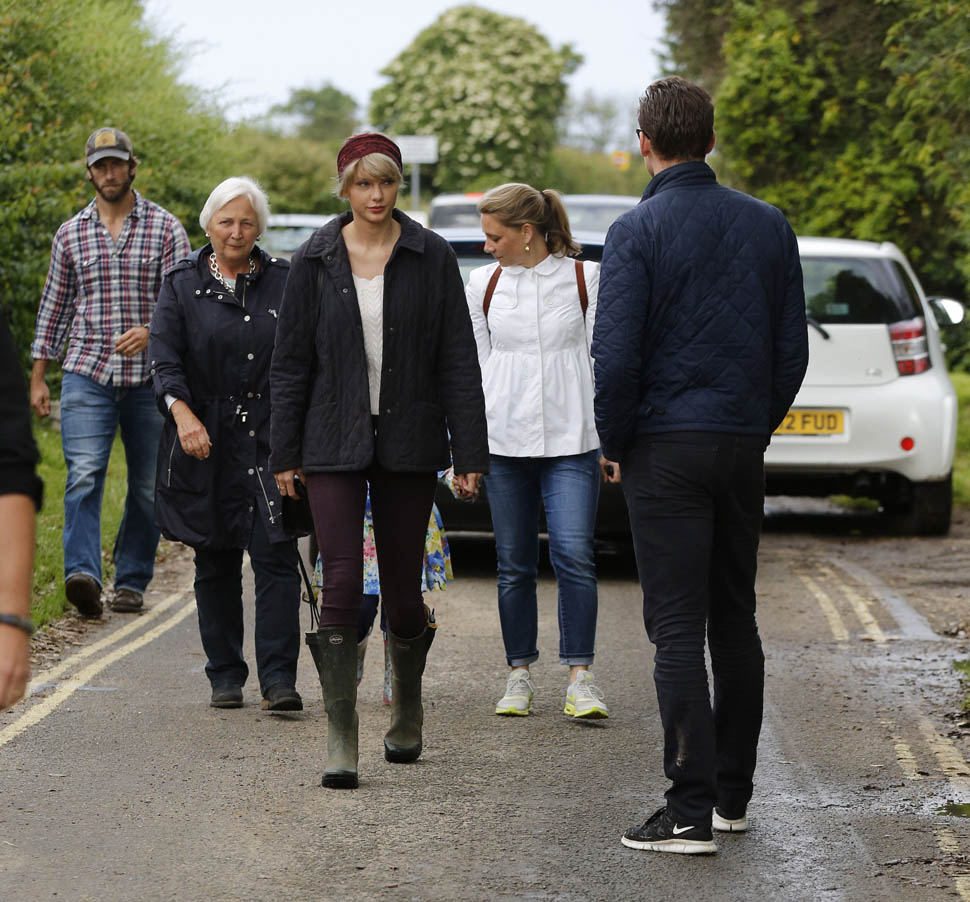 As you know, Swoki was in Nashville last week and hung out with her parents. Then they flew to England for the weekend and were photographed all over the place with his ma, his sisters, his brother-in-law, etc.
