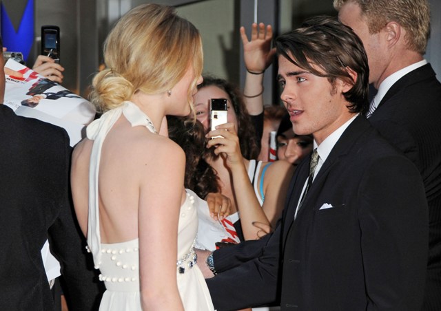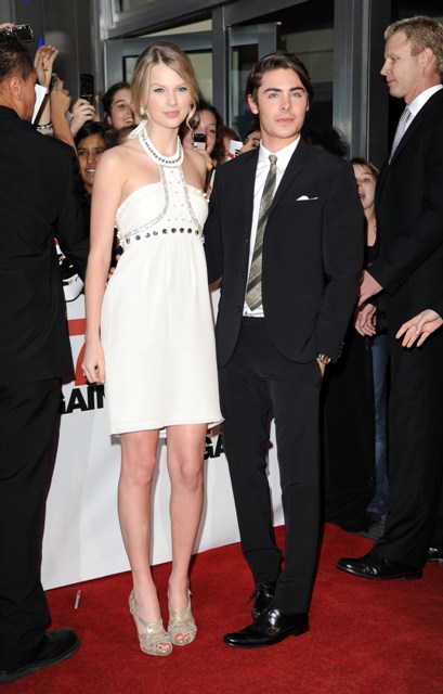 So this is a very tall Taylor Swift not afraid of her height, never apologetic, in at least 4 inches today in Sydney, posing next to LipGloss Zac Efron at the Australian premiere of 17 Again. He’s probably seething about it. Let’s play Photo Assumption on his face: