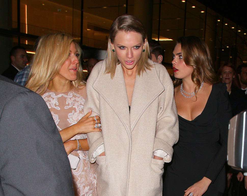 Taylor Swift was in London last night with all her model friends and musician friends and lots of friends, friends everywhere. It was the ELLE Style Awards. And, can you believe it, she’s not wearing Elie Saab. Or shorts.