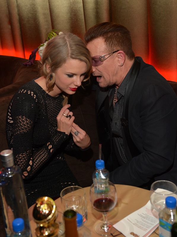 No, disappointingly, they didn’t give us her “special place in hell” face. Taylor being Taylor though, she decided that if Tina and Amy didn’t want to be friends with her, she’d be friends with Meryl, Julia, and Bono instead. After changing into a much cuter short black cocktail for The Weinstein Company party, she danced with Hailee Steinfeld and Jaime King and posted up on the guy who Amy made out with before getting up on stage to collect her award so in her mind, the night is a win.