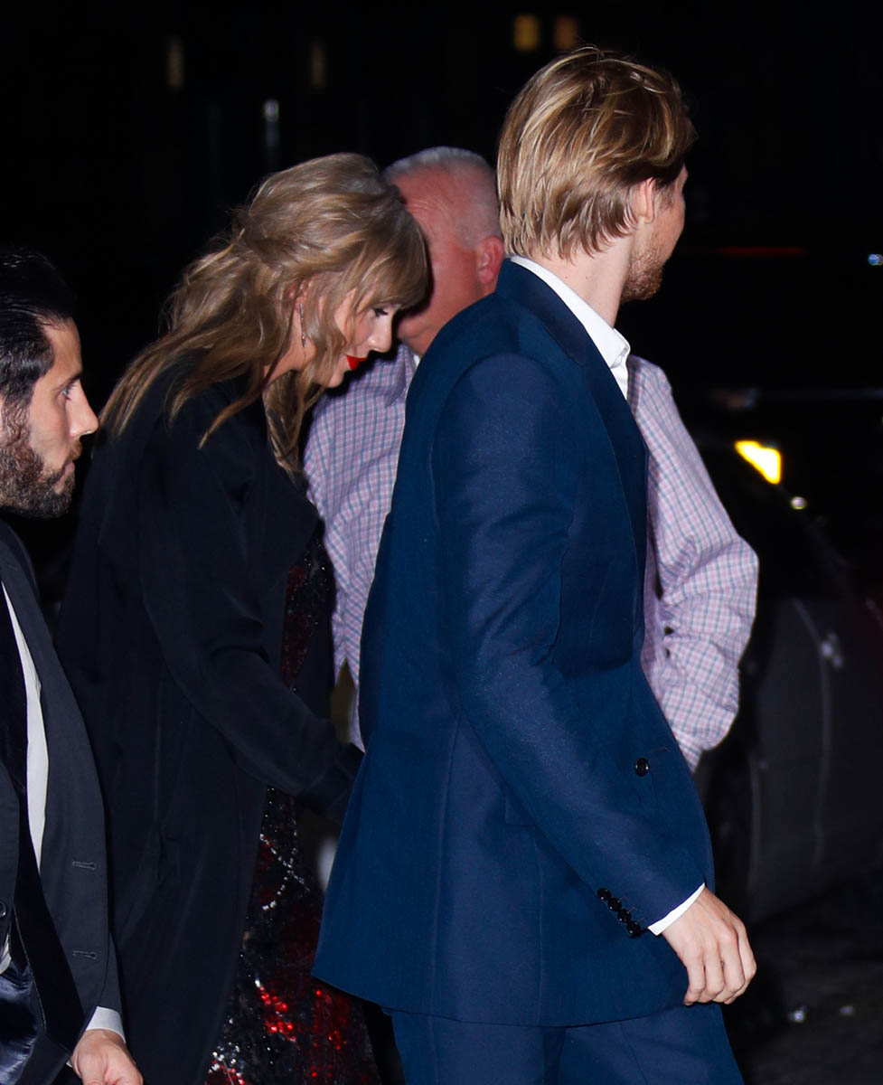 This past Friday, the 28th of September, Taylor showed up to support Joe at the premiere of The Favourite. Taylor had a few days off between her show in New Orleans on September 22 and her show in Houston on Saturday, the next day. Clearly not an issue though as she and Joe stayed out pretty late on Friday night at the after-party, returning to her apartment well after 2am.