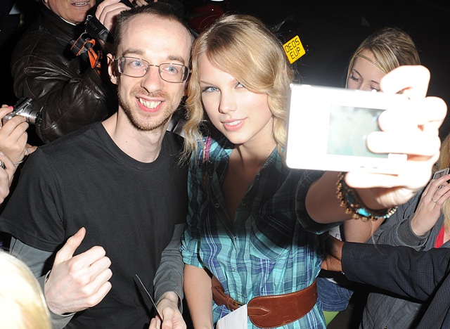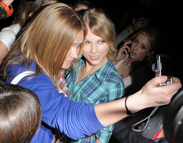 Here’s Taylor in London last night happily hanging out with fans who were waiting outside her hotel.