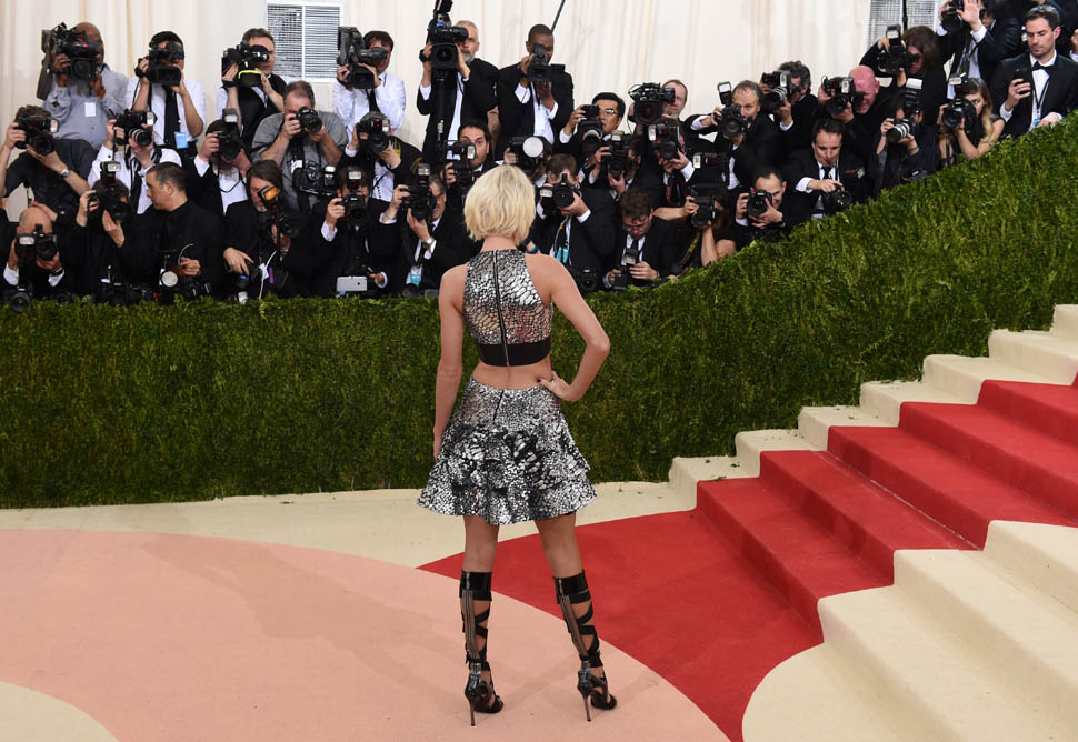 Come on. She’s been strutting out of her NYC apartment in these kinds of outfits for two years now. Apart from the silver scales and the lace up shoes, there is nothing here you haven’t seen before. In pap candids and, actually, on her tour.