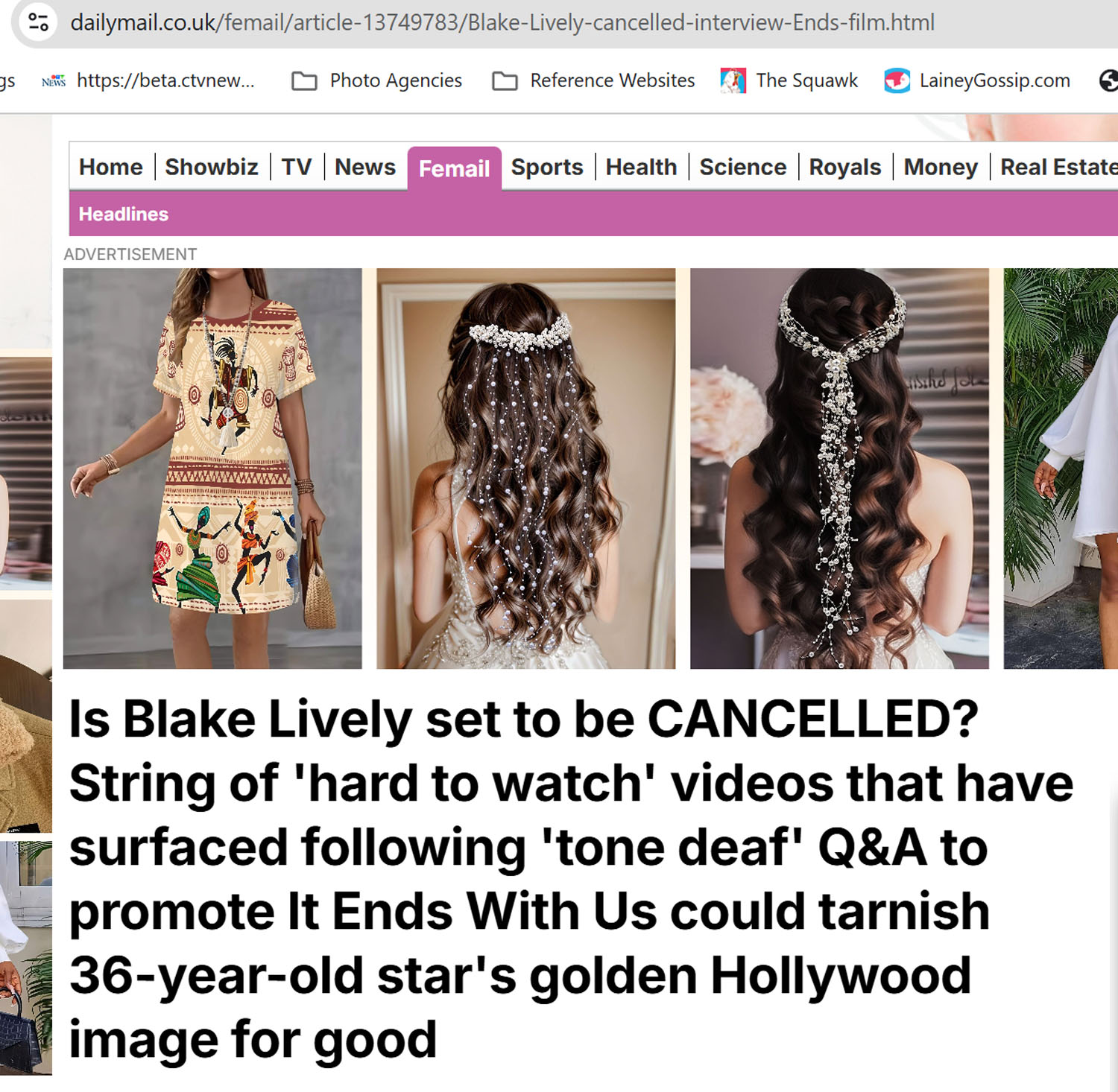 Obviously The Life of a Showgirl has been a huge story all weekend as people continue the forensics into her lyrics and imagery. In my post on Friday, I wrote about how the song “CANCELLED!” is undoubtedly about and/or for Blake Lively, in support. Two more pieces of evidence that emerged that I didn’t include in that article – this Daily Mail headline from August 2024: