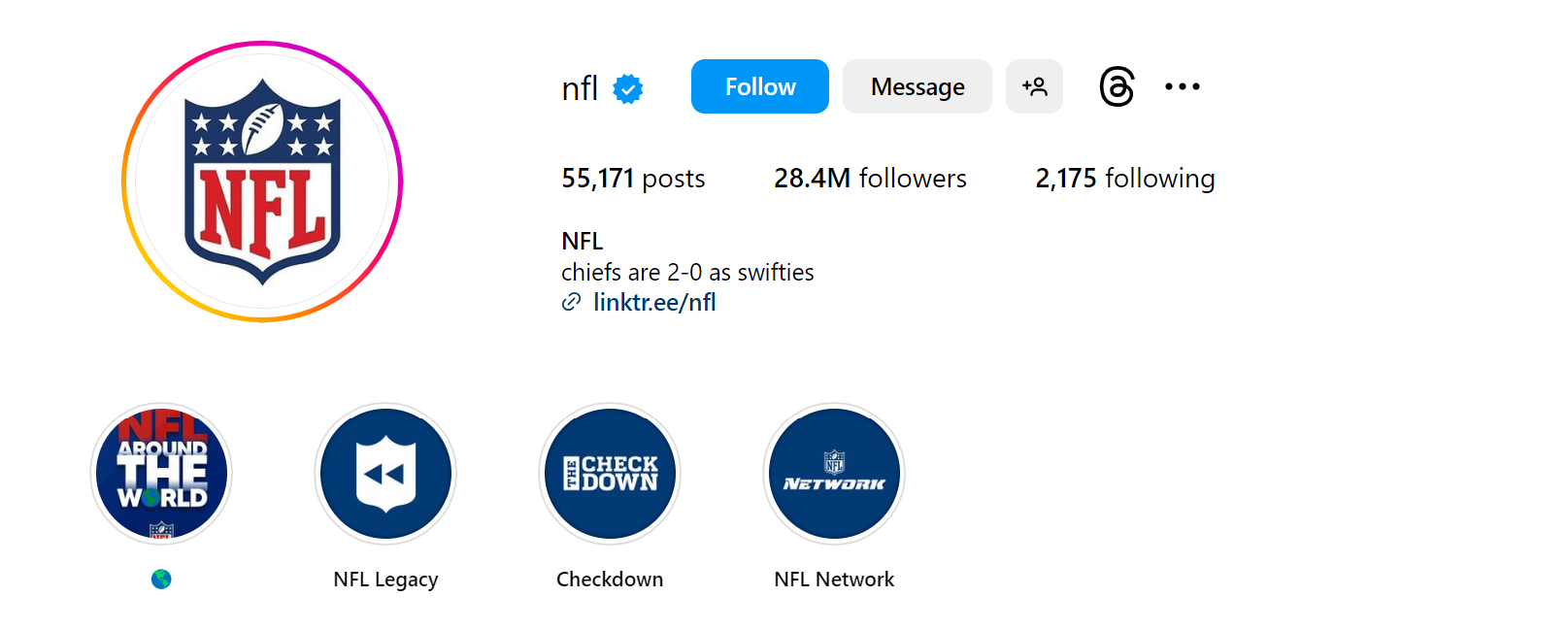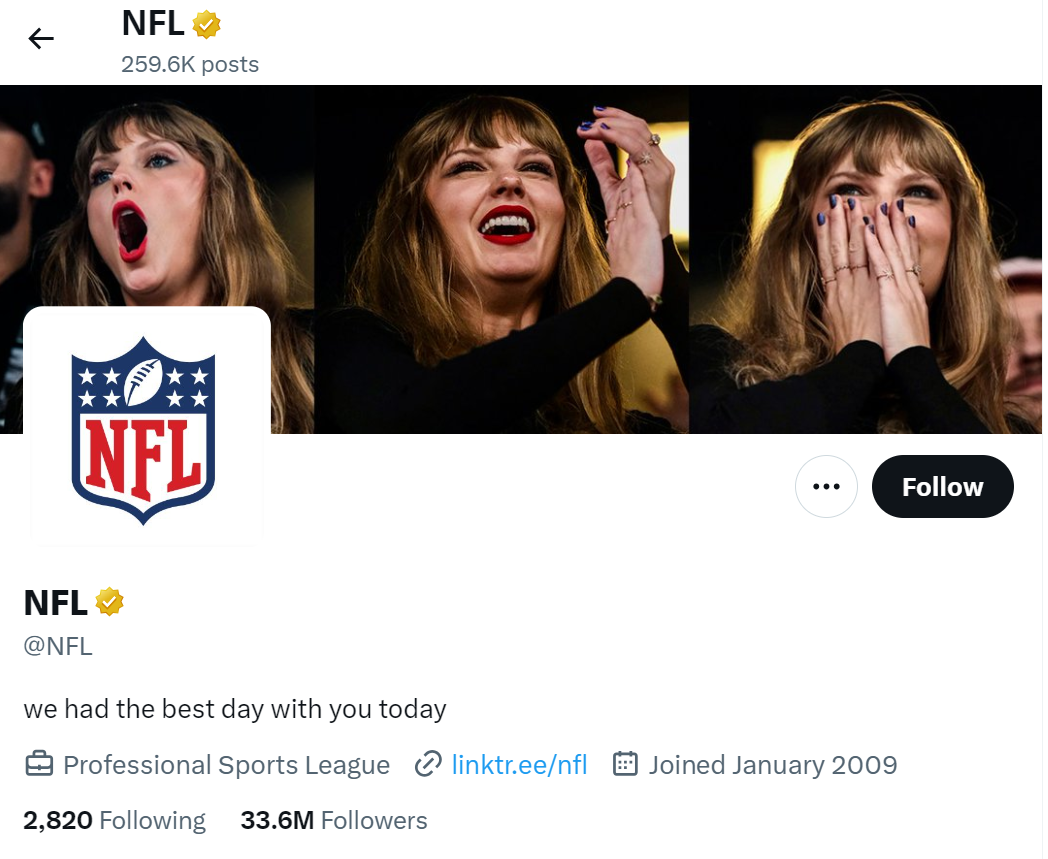 This is the biggest professional sports league in North America. The NFL is an American institution, football is a religion. But they’re the ones doing the most right now. Look at their Twitter header: