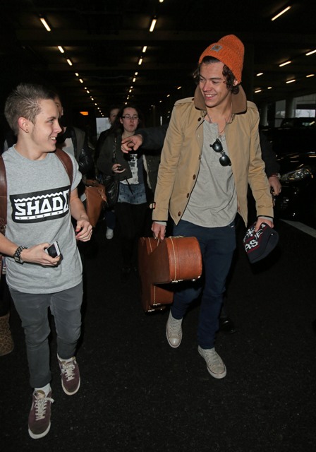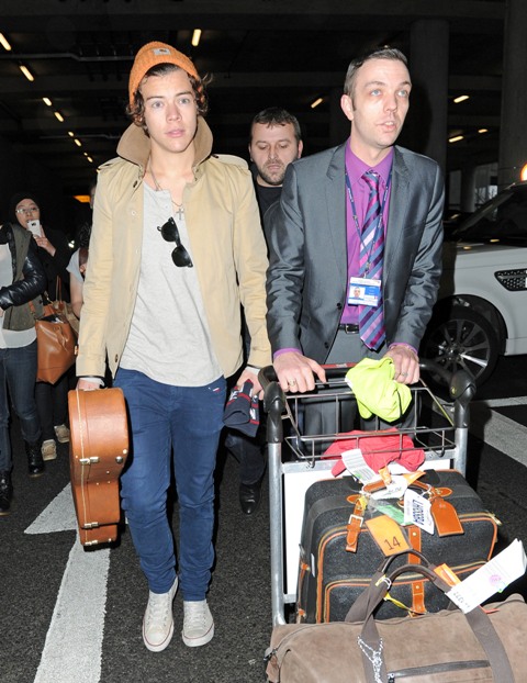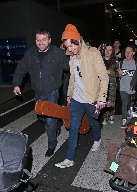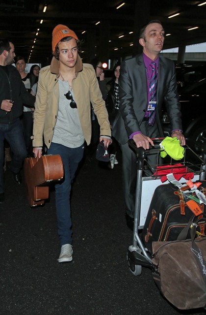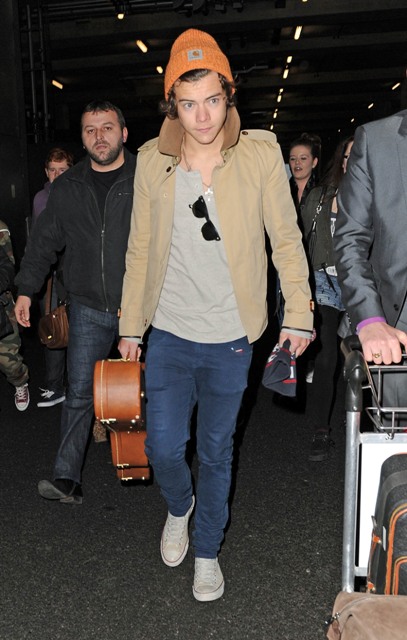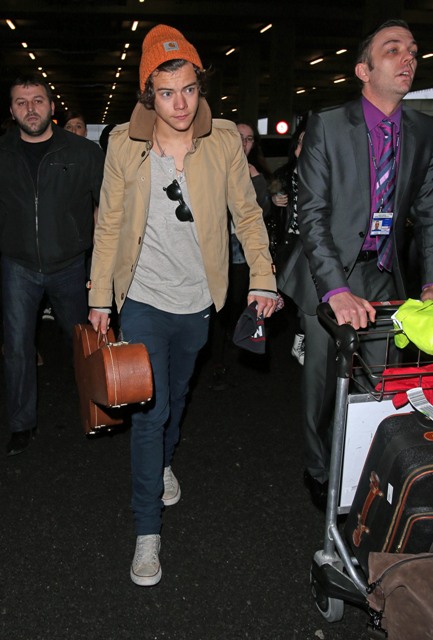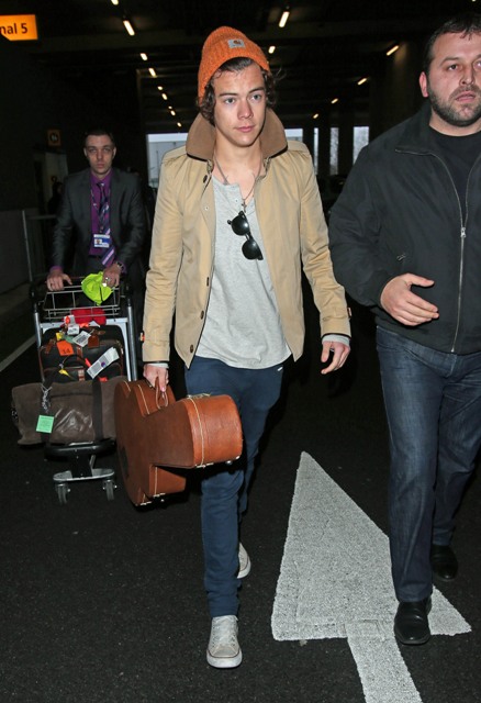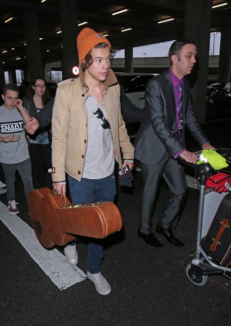 Harry Styles arrived back in London today after celebrating the New Year in the Caribbean, partly with Taylor Swift. Rumour has it she gave him that guitar he’s carrying. Rumour also has it that they’ve broken up already. According to Business Insider they threw down at some point last week and she left him in the British Virgin Islands, whereabouts currently unknown. He flew to Necker Island for some fun with friends, then went back to the BVI, and is now home to get back to work on the One Direction tour.