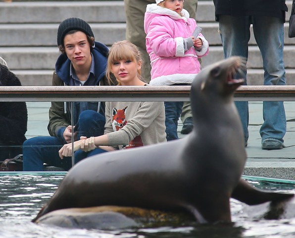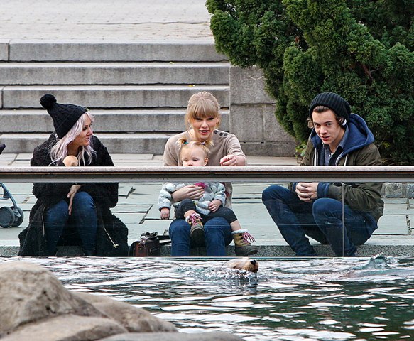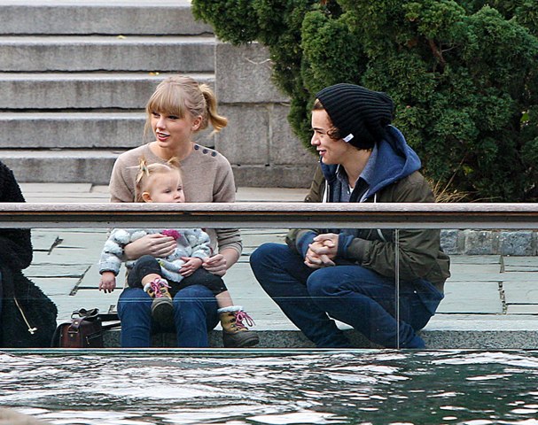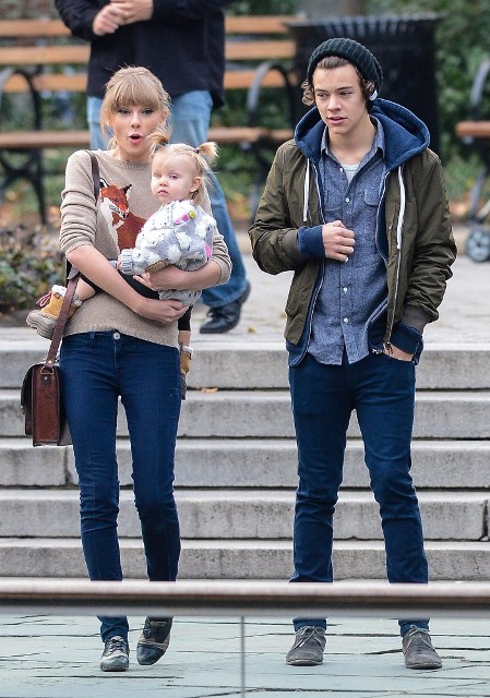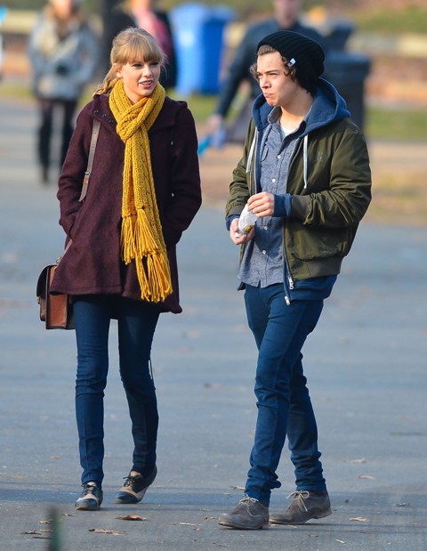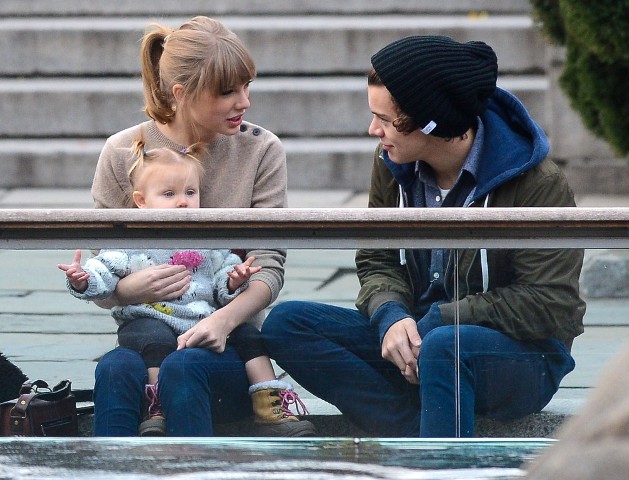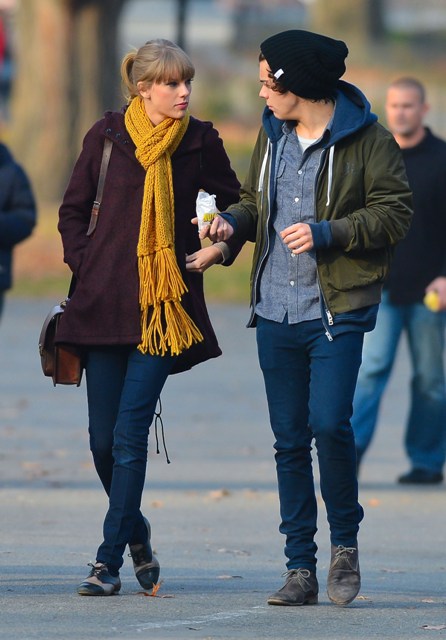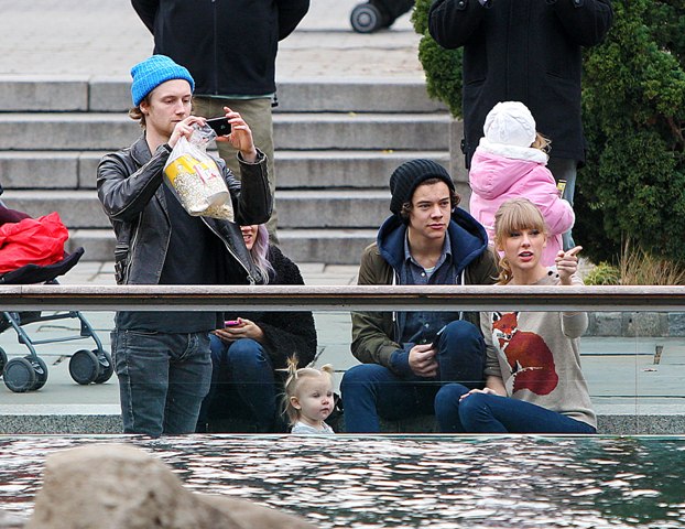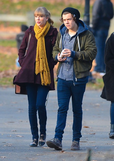 So this is why they’ve been going bananas on Twitter today. Two weeks ago Taylor Swift and Harry Styles flirted openly at The X-Factor but no pictures. On Saturday she was in LA for the Jingle Ball. By Sunday she was in New York, surrounded by paps from several agencies, enjoying the warm afternoon with friends, one of whom had a baby, which, obviously, makes the story even better.