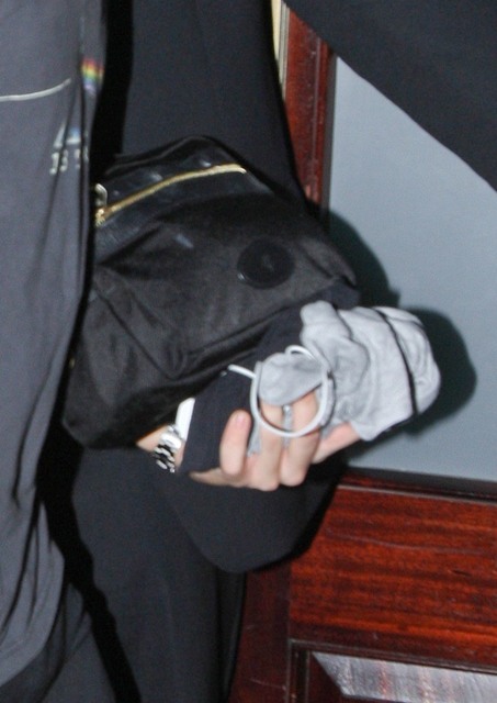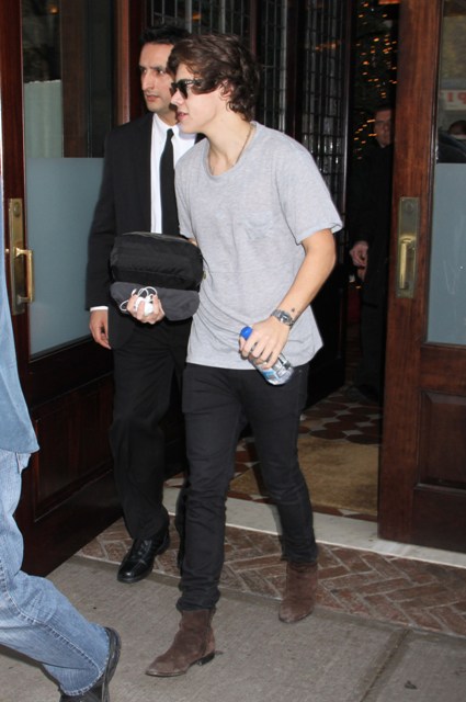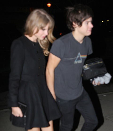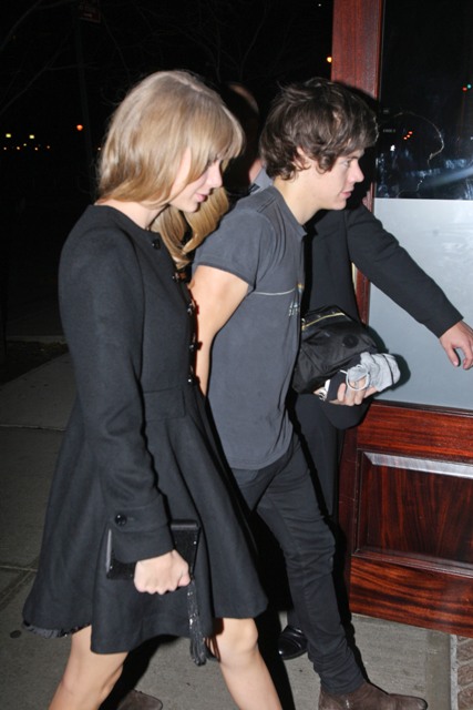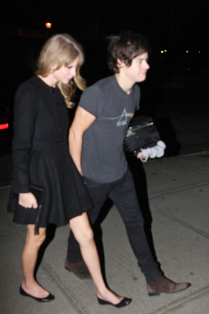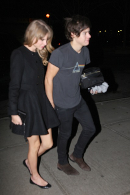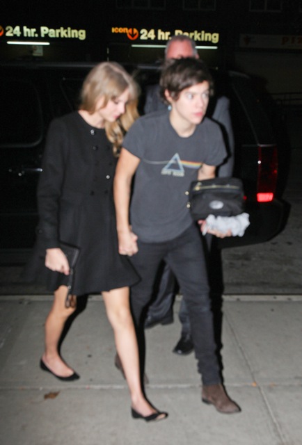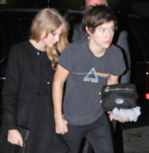 While Taylor was over at the Kennedy event, Harry and One Direction played Madison Square Garden. As soon as she was clear to leave, she hit up the 1D after-party, and here are the first shots of the two of them holding hands last night. Look -- he came prepared with a toiletries bag and a spare t-shirt. Sleepover!