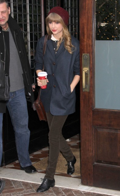 Check them out, leaving the hotel separately, the morning after. And looking really pleased with themselves. She doesn’t seem embarrassed by it at all. Good. This is what you do at 22 -- you sleep over and you don’t have to wake up the next morning with an engagement ring on your finger, no apologies. Sing about that.