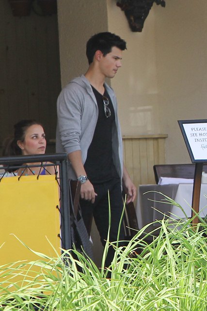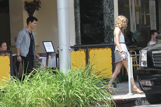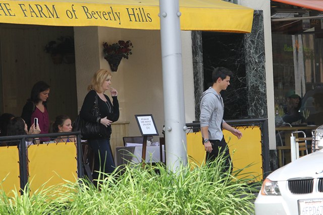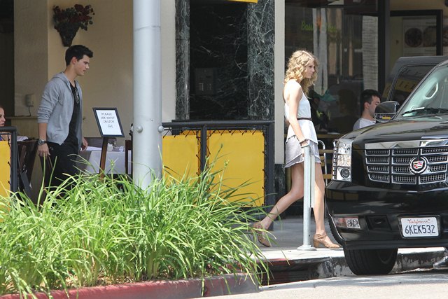 Oh look! Tom Cruise Jr has a friend! It’s also an “ex girlfriend”. Just a day after bowling with her BFF Selena Gomez and Cory Monteith – click here for a refresher from yesterday – Taylor Swift hooked up for lunch with Tom Cruise Jr Taylor Lautner at The Farm. Her ma was there too. Swifty and Tom Jr left together in the same SUV supposedly headed for a hotel. Repeat: her ma was there too. Her ma would much rather her be dating plastic boy than undercover running around with John Mayer. And my sources say that sh-t is still going on. Besides, Tom Jr desperately needs some accessories his own age. So their little match was one giant emoticon smiley face. Only chemistry is everything. And right now it’s hard to imagine Taylor Lautner having chemistry with anything but a pair of cut-off jean shorts and a prewritten set of answers.