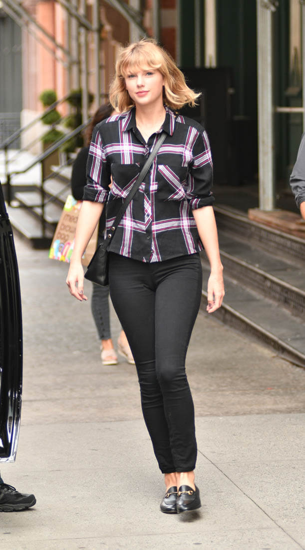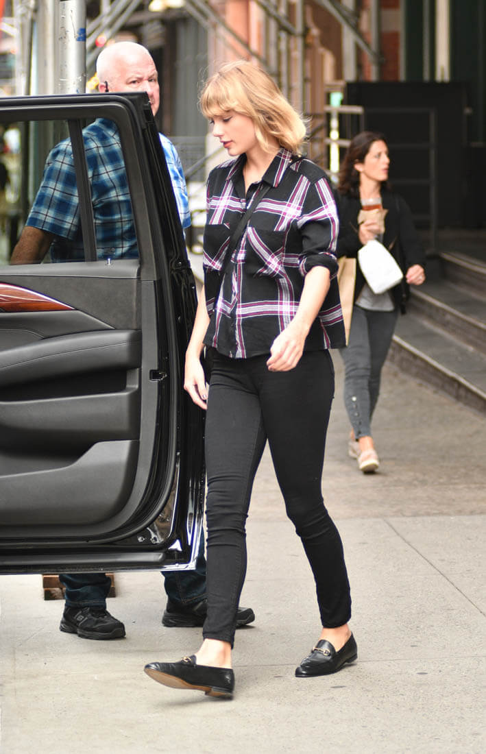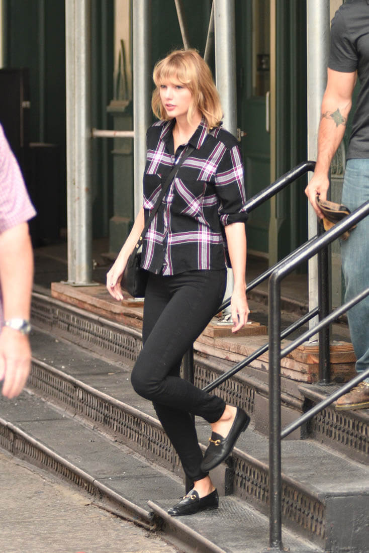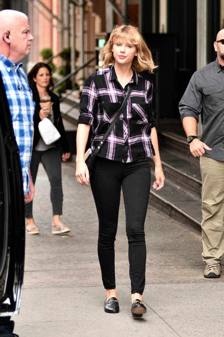Taylor Swift stepped out yesterday in New York in plaid, flats, and a cross-body and it’s the perfect outfit for “what to wear to class on a fall day”, the only minor issue being the size of the bag. I wonder if that’s how Taylor approaches her wardrobe choices, which is not unlike how some of us might as well. Do I want to look like I’m walking around campus? Do I want to look like I’m meeting up with my friends on a Friday night at the pub? Do I want to look like I’m one of the characters in Friends, one of six, walking down a cobblestone path? In my mind, when I do this, it’s always in slow-motion. Taylor always has slow-motion face. Like a good face. When she’s papped it’s like she’s always aware that the frame can be slowed down. Reality for her actually IS, as Jay Z said, living life as a video.