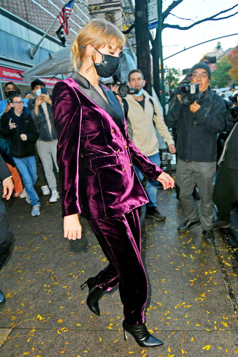 Taylor wore a purple velvet suit to the premiere of the short film on Friday and then the next day, on Saturday Night Live, she performed “All Too Well” in one mesmerising ten-minute set with the film playing behind her, a departure from the standard two performance situation we normally see on the show. It’s a challenge to hold an audience for that long on one song – and for me, she nailed it. Taylor is such an effective lyricist, aka storyteller, that “All Too Well” did not feel too long, not at all. Not in this medium. It’s live television, it’s live performance, and SNL is one of the only, if not the only format that consistently allows for this to happen on TV. That’s not to say that every entertainer should be given that long of a slot, but in Taylor we have one of her generation’s best songwriters, and a song in particular that’s captured so much cultural imagination, I feel like if there was anyone complaining, it might have been the song’s subject, LOL, and the men who sympathise with him.