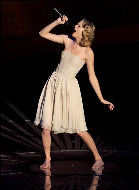 And it was slightly overwrought and overdone, and does the forgiving virgin have to be wearing white? And I will freely confess to being a bit of a sap when I hear stuff like this that I probably wrote in the playground in grade 4 when Jennifer Sarah was mean to me - but it basically got the job done. And she didn't smile and she looked sincere and was new! Tough! Taylor in her bare feet! They didn't cut away to audience members reacting to this plucky little thing. It was good TV.