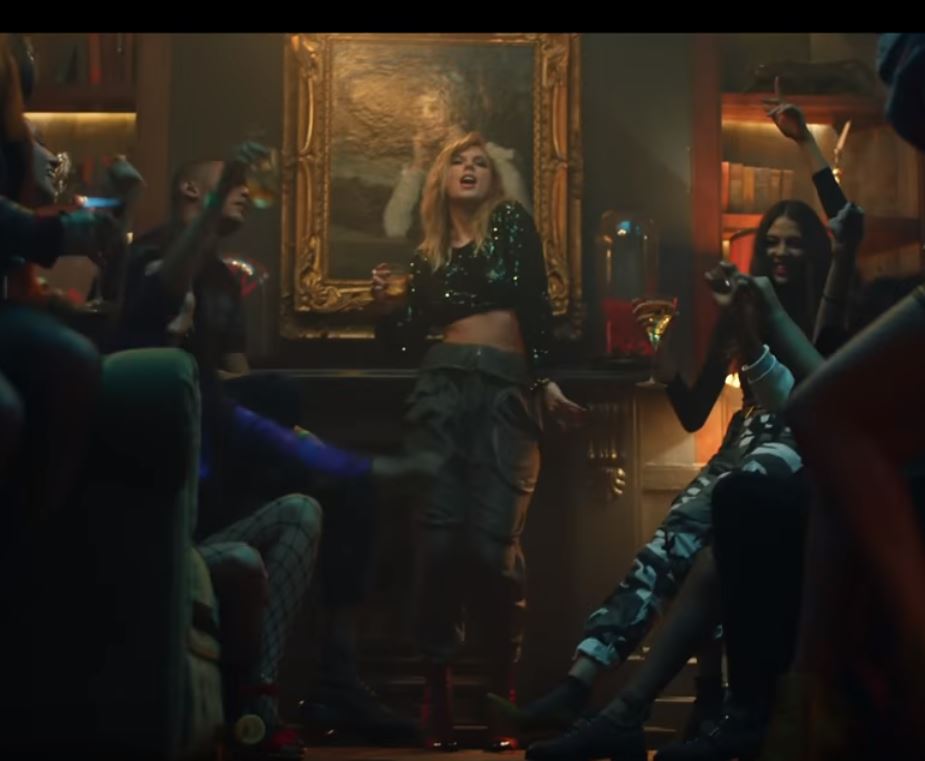 Wearing really cute clothes. This is why I like the End Game video more than its predecessors. Because, as I’ve said a few times, I like Taylor’s reputation style, the footwear in particular. Continuing on that point, the shoes are good in End Game. But my two favourite items are the black oversized sequined zip-hoodie she wears in the Future section of the song and the cargo pants she wears near the end, with the sequin crop top.