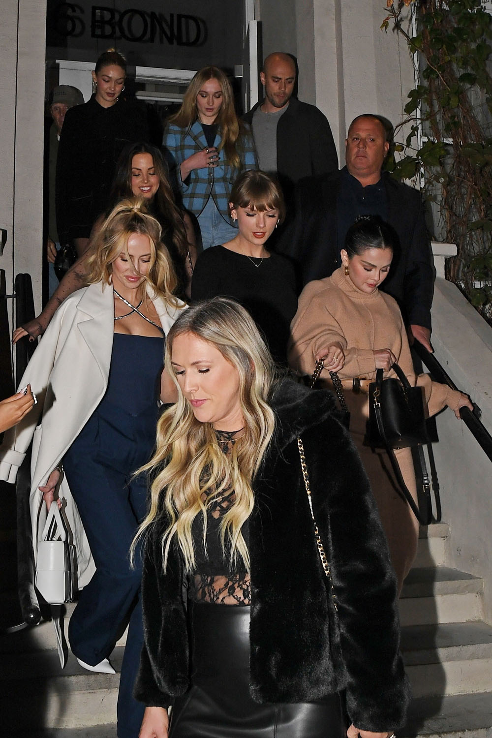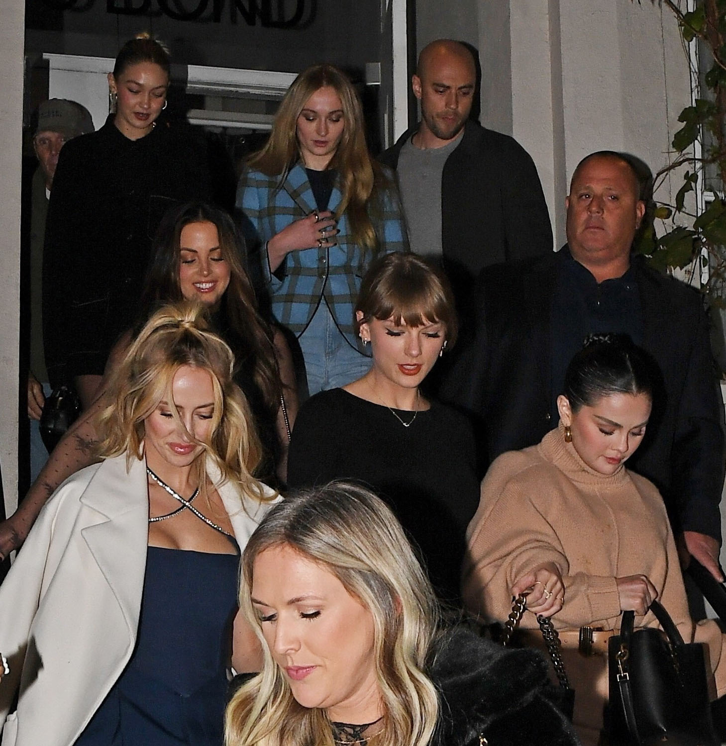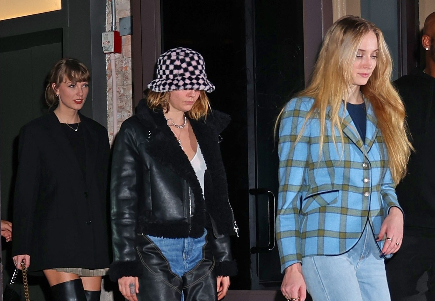Next to Taylor’s Saturday night – big girls’ night out with Selena Gomez, Brittany Mahomes, who also chose not to go to Germany, Cara Delevingne, Gigi Hadid, and Sophie Turner, who was likely back in New York to pick up her children from Joe Jonas as it’s now her two weeks for custody according to their temporary arrangement.