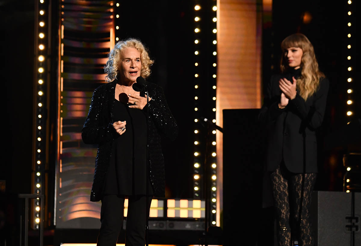 By Taylor’s standards, then, this weekend was quite visible. In addition to Halloween, she also showed up at the Rock Hall for Carole King’s induction, singing “Will You Still Love Me Tomorrow” wearing the sh-t out of a black lace catsuit.