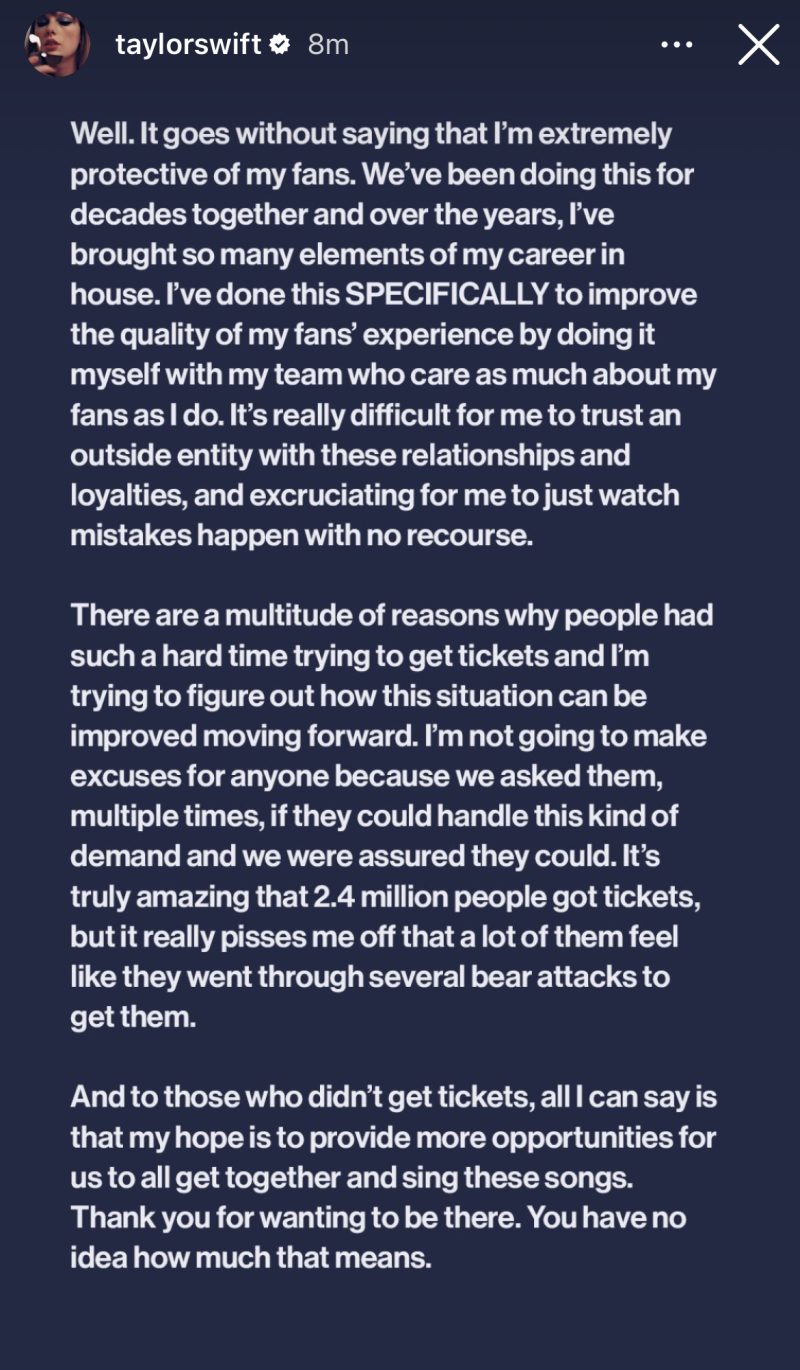 Taylor issued a statement about Ticketmaster’s f-ckery the other day: