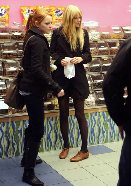 TSwizzle was out for girls’ night with her friend Emma Stone Wednesday. As previously mentioned, I LOVE Emma Stone. And I love Taylor Swift. And when girls are good friends it’s Happiness. Having said that, Taylor’s also been hanging out with that douchebag John Mayer lately. They collaborated on a song. I won’t speak of this. Let’s pretend it never happened.