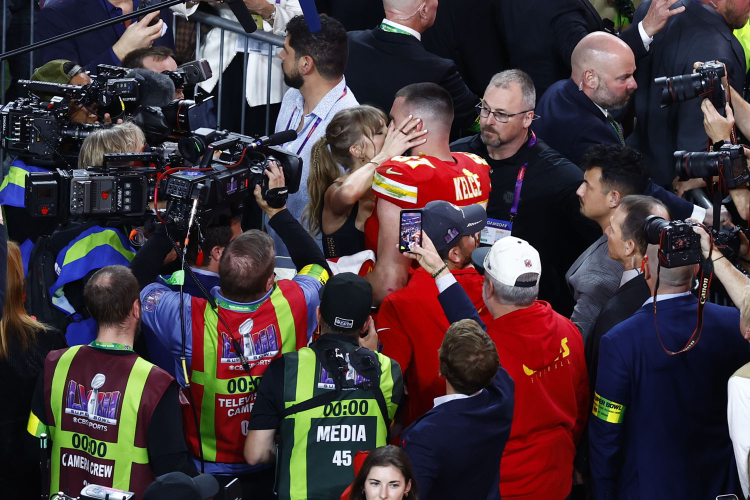 🎥| Taylor and Travis kissing pic.twitter.com/rkPEEV8O3I