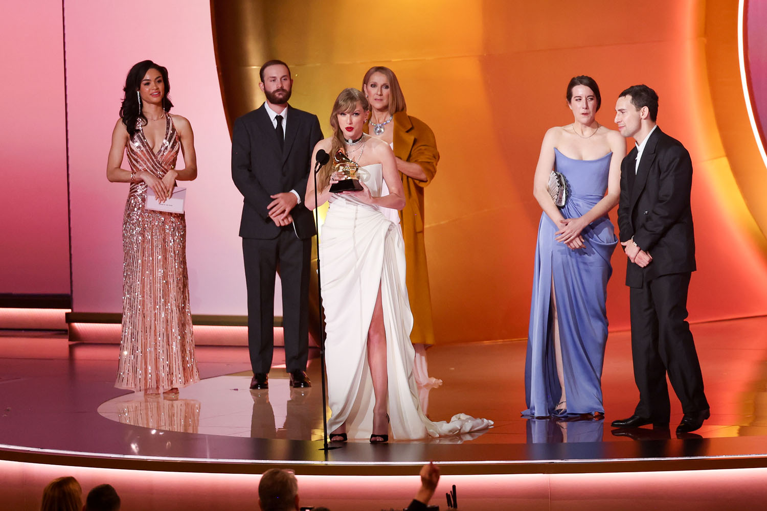 Celine Dion presented the final award of the Grammys, album of the year, to Taylor Swift. Dion’s surprise appearance follows her announcement of a forthcoming documentary chronicling her diagnosis with stiff person syndrome. #Grammys #CélineDion #Icon pic.twitter.com/NREZ1WZwjk