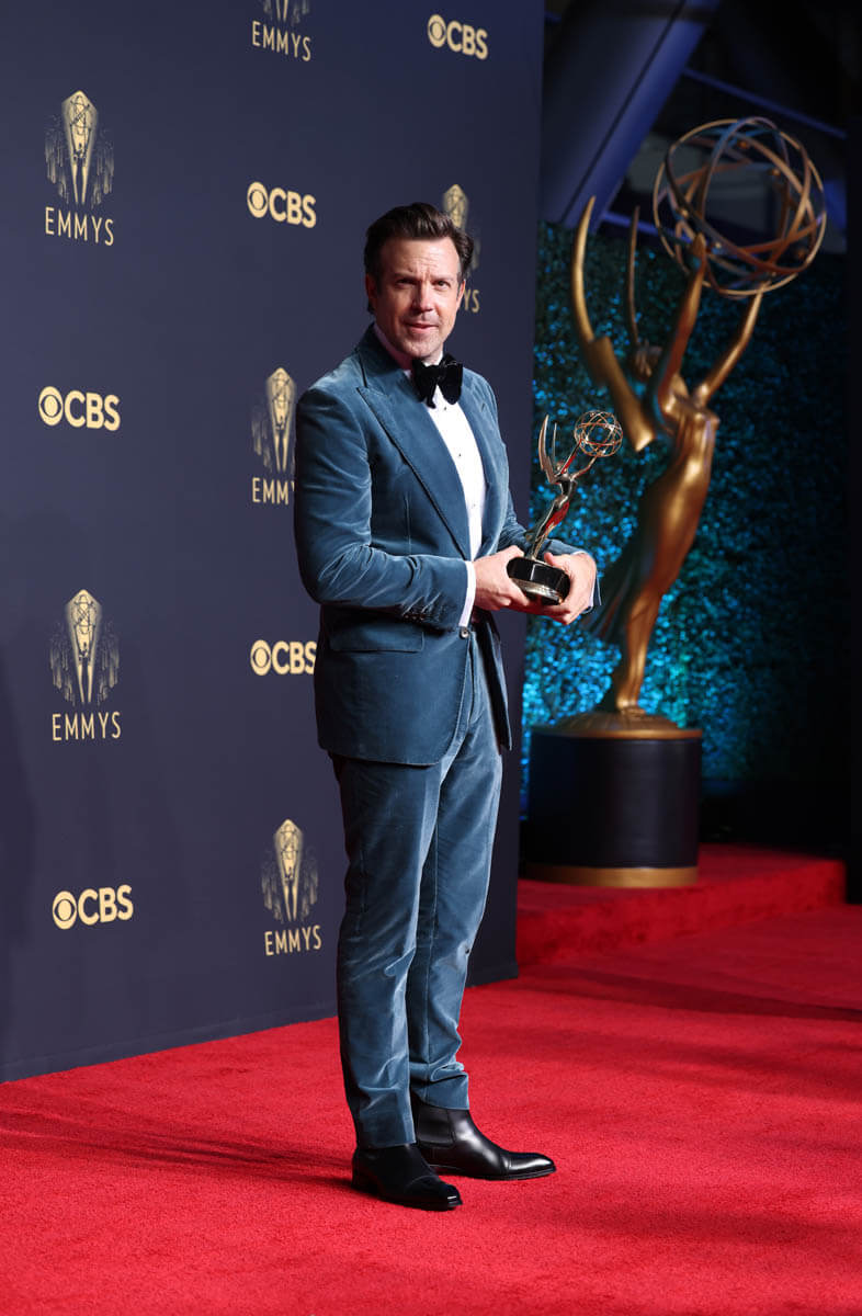 His newfound appeal is down to his shift in vibe. Previously, his public persona was “smug asshole”, thanks largely to all the smug assholes he played in films and television. Now, though, he has the conferred Power of Ted, which might be a real part of him, and there was the whole Zoom hoodie thing, which people loved. People are just very willing to be pleased by Jason Sudeikis these days, so if he shows up somewhere looking even halfway respectable, online horniness will ensue. Also, when ID’ing his teal velvet tux, he referred to Tom Ford as “little Tommy Ford”, and I would really like to see Tom Ford’s face when he hears that.