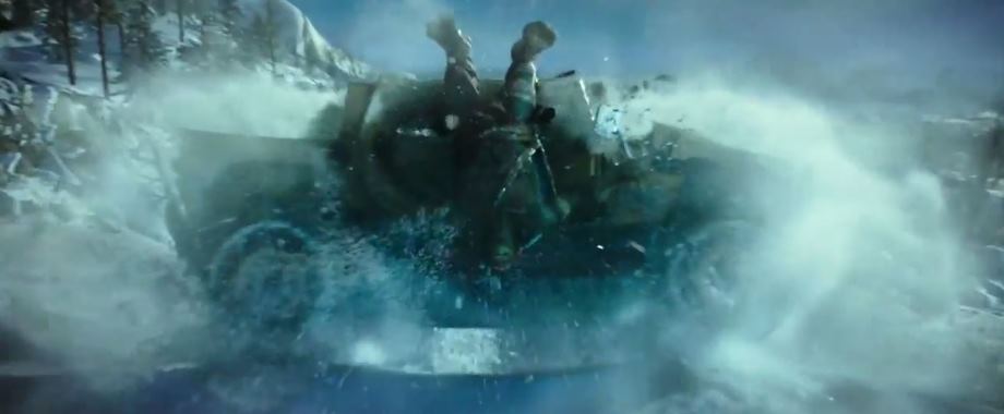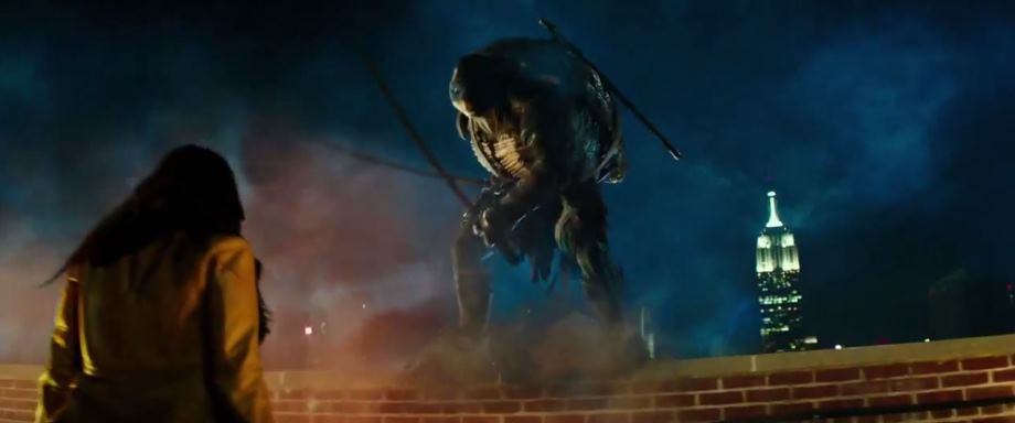 This trailer does have a little new footage, including a blink-and-you’ll-miss-it look at Shredder and a blurry something that may or may not be Splinter. Oh God, if the turtles are this horrible I can’t imagine how repulsive a life-sized upright rat is going to be. I literally shudder to think it. There’s also a turtle skateboarding and Donatello wearing some strange gadgetry because, science, and a teensy bit more of the turtles in action.