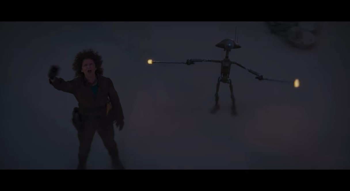 Because this is what this trailer is showing us. We see Greef Karga (Carl Weathers), obviously doing well for himself, and Peli Motto (Amy Sedaris), still running her space port; these are both characters native to this show, it’s nice to see their ongoing stories. There are also a couple Bobu Frik critters, so I guess we’re just shoving all the cutest merchandizing opportunities into this show, which is fine as long as it’s not Luke F-cking Skywalker again. PLEASE just let ONE corner of Star Wars exist free of Skywalkers and special blood. We do see some Jedi with lightsabers in the trailer, but that could be a flashback to the time when the Jedi warred with Mandalore, or maybe it’s survivors of the recent events of the original trilogy, unknown Jedi who suddenly have something in common with Mandalorians—the Empire kicked both their asses (for a while, anyway). Either way, NOT SKYWALKERS. I have given up on any part of Star Wars remaining Jedi-free, now I am just praying they can move beyond Luke and Leia. I am here for the restoration of Mandalore, not more Skywalker propaganda.