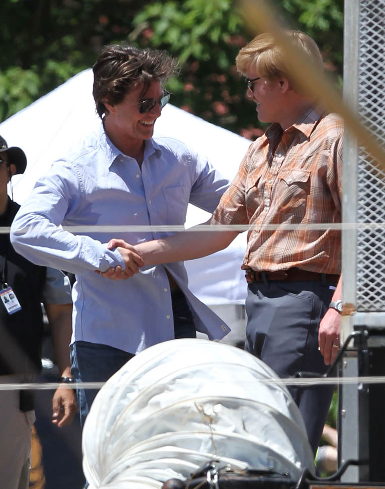 Attached - Tom on the set of Mena today with Jesse Plemons.