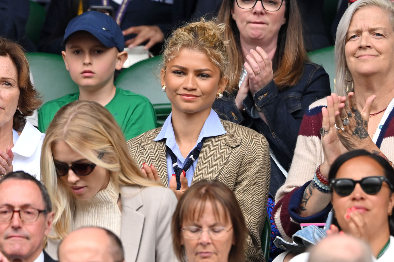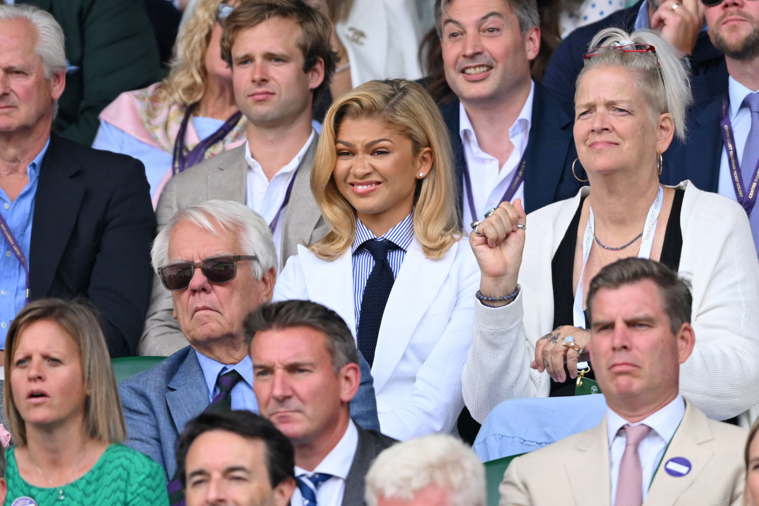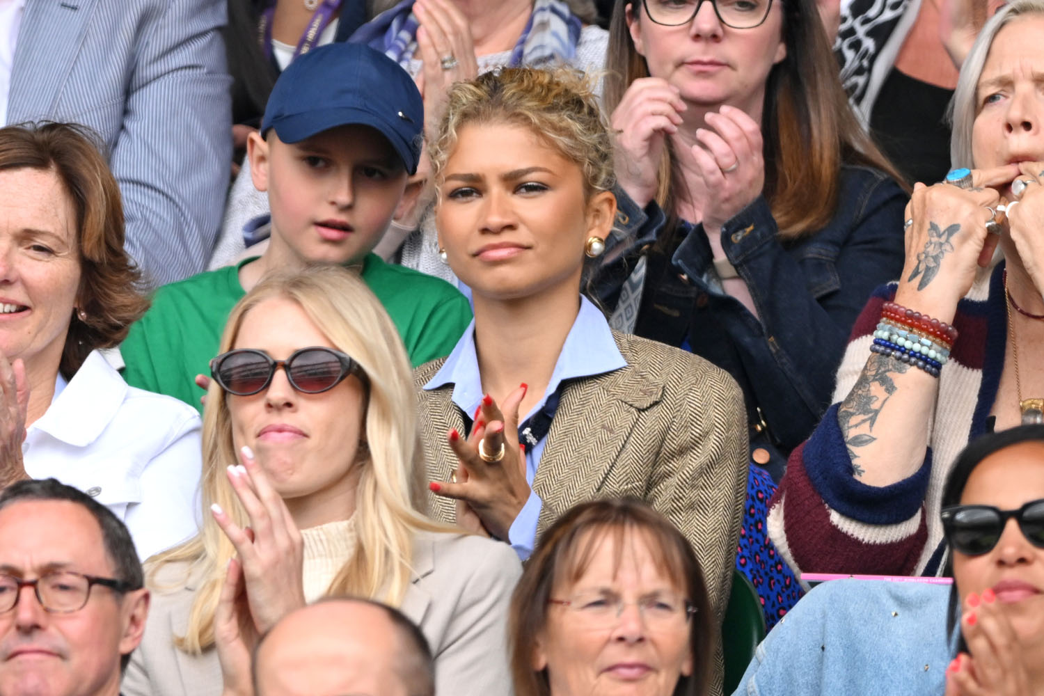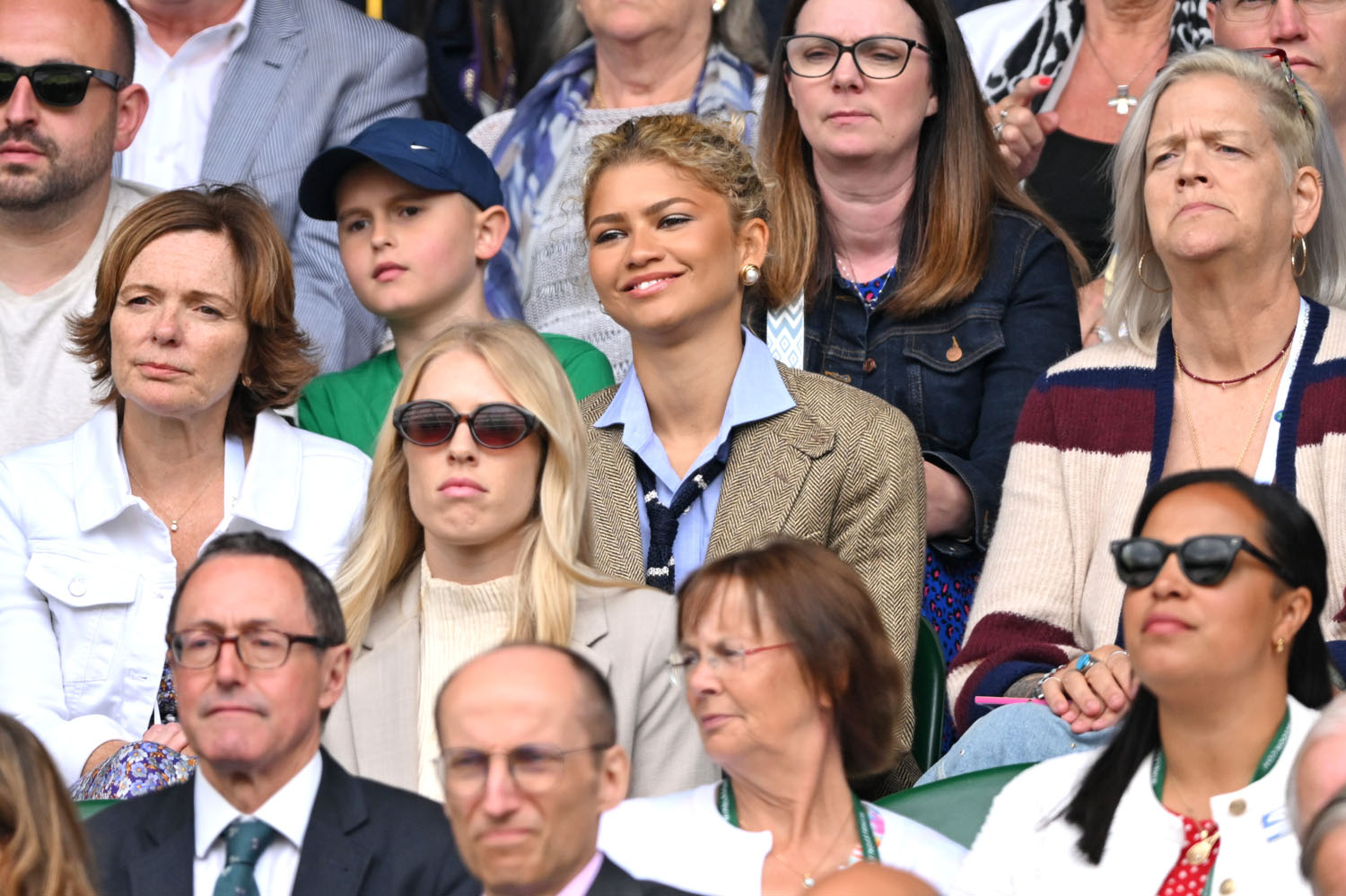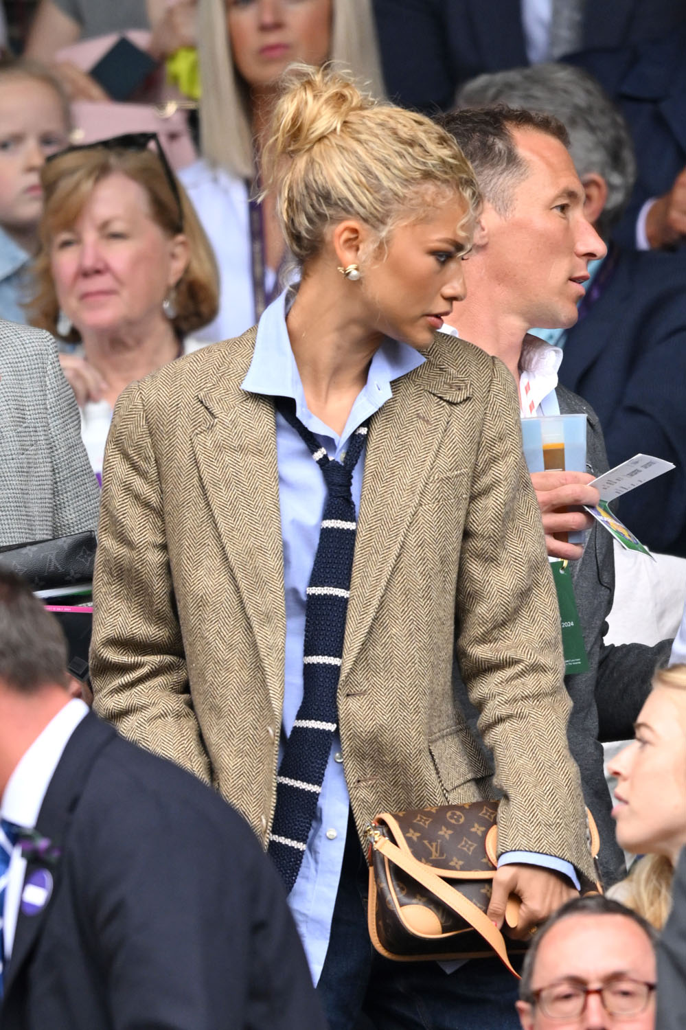 In other Zendaya news, she was at Wimbledon this weekend for both the men’s and women’s final. The looks were similar but the styling is what set them apart. On Saturday she was giving student after classes – the shirt unbuttoned, the tie loosened, everything was a little disheveled, intentionally, and accessorised by the LV crossbody.
