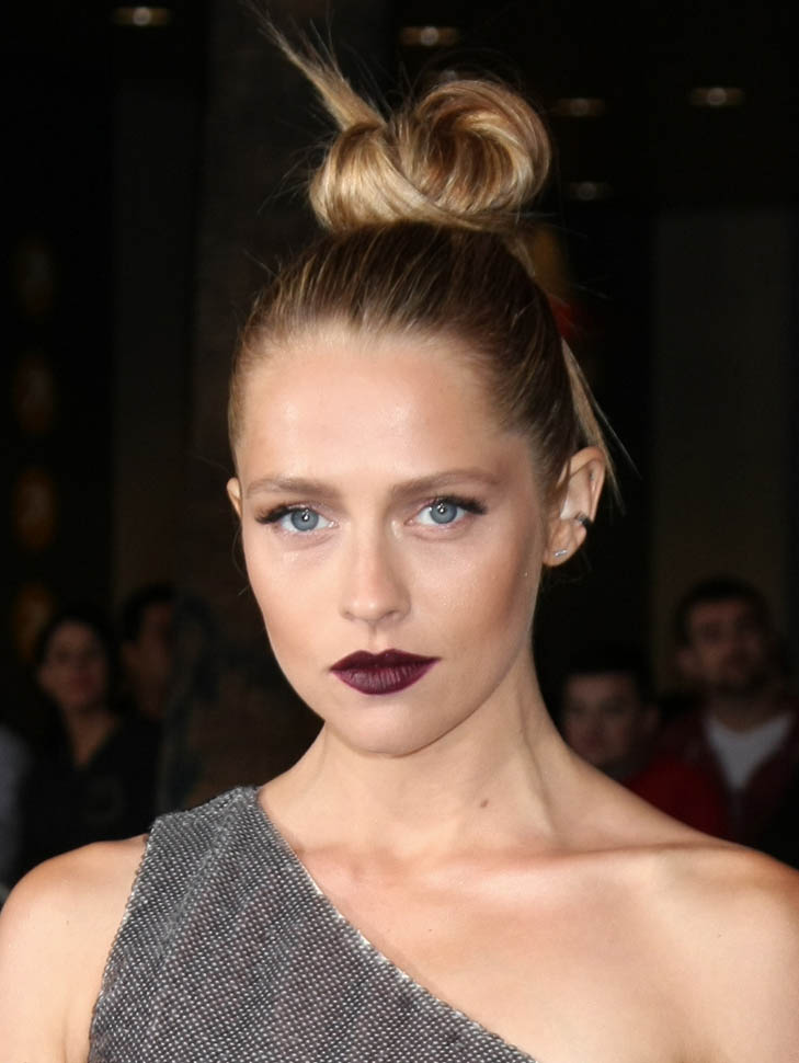 Carpets & Candids: Teresa’s topknot and dark lip