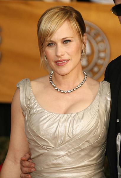 Do I need to remind you of the eyesores she’s worn before? Here…let me remind you. But still…in the past… I have refused to cut Patricia Arquette. Because in spite of the example set by other prime time players on television, Patricia has avoided the Teri Hatcher habit of squeezing the life out of her face and the other endless examples of emaciated celebrity garishly illustrated by her peers. Besides, who doesn’t love some heaving cleave? And who can help but admire how wonderfully inoffensive she looked at the SAGs? Or how smitten she is with her husband Thomas Jane? And how smitten he is with her! One of my favourite moments of the show – when Chandra’s name was announced and both Thomas and Kevin Bacon consoled their wives lovingly and not for the benefit of the cameras, a rare glimpse of two authentic showbiz relationships…no complaints here.