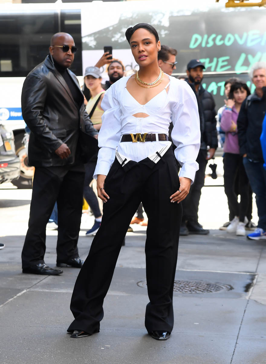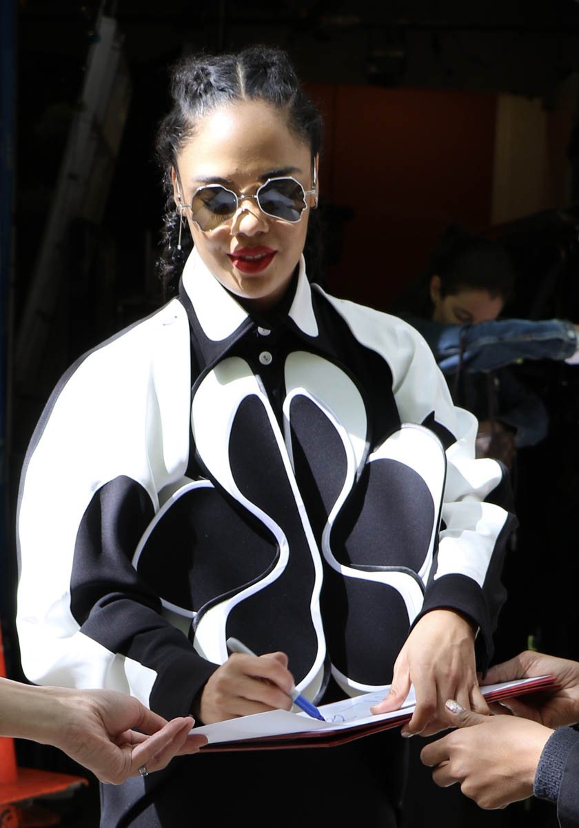 Tessa Thompson was the Outfit of the Week last week . And she claimed the title early, like I think it was Monday. Because there was no way in my mind that anyone was going to top that – or if anyone was going to top her, it would be her. What she’s done instead is win back-to-back championships, and this time, this week, she’s done so with SO MANY different outfits. Each one of these could be the OOTW, it’s impossible to choose.