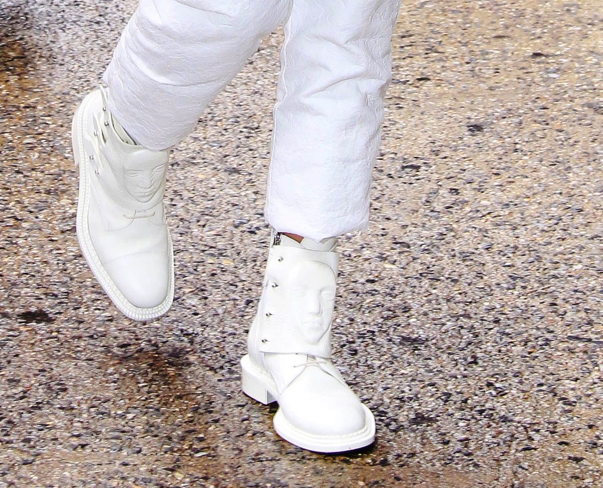 And we’re still not f-cking done. Here’s my personal favourite, because it’s streetwear, because I will also be copping this as soon as I can find the affordable versions – please enjoy Tessa in all white: crop tank, under a crop hoodie, under a long flak jacket, jeans, and the sickest pair of boots I’ve seen all year. Like docs, but look closely…