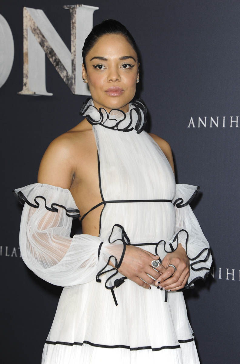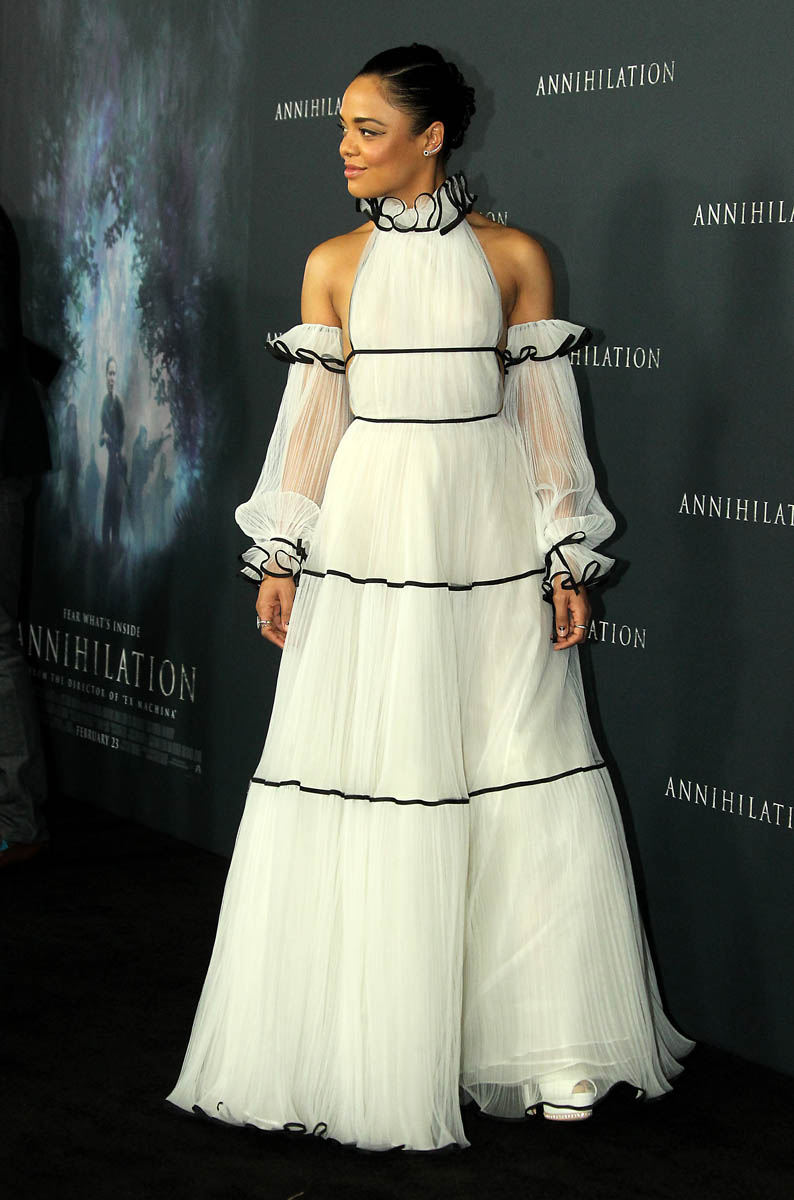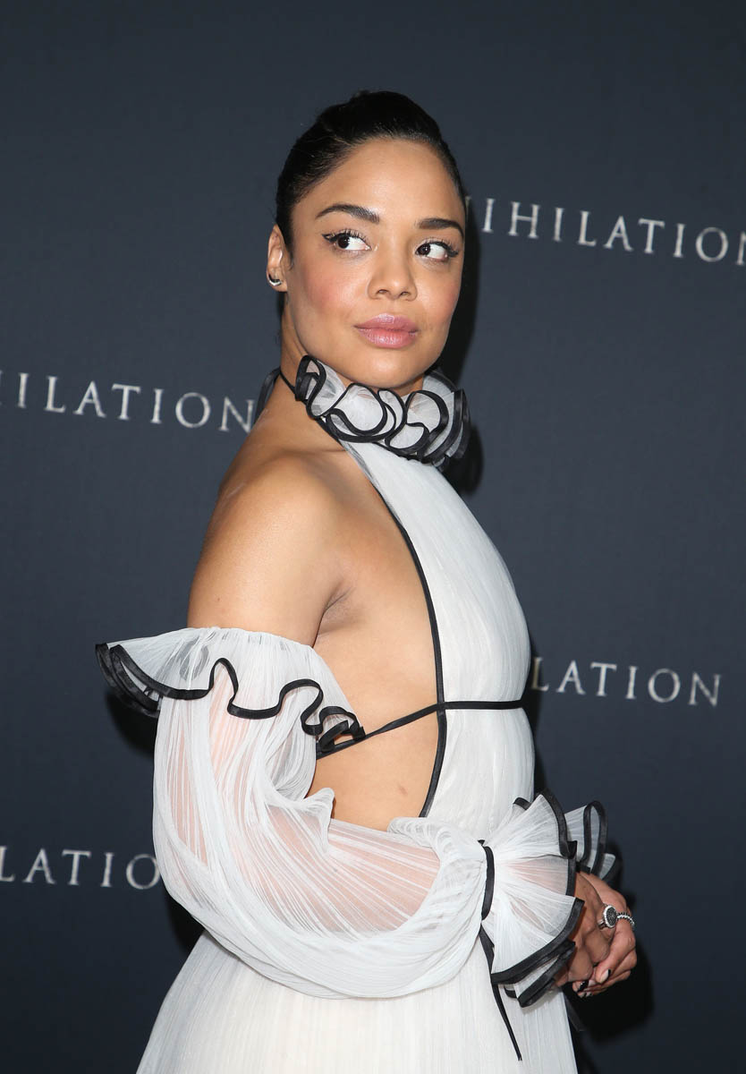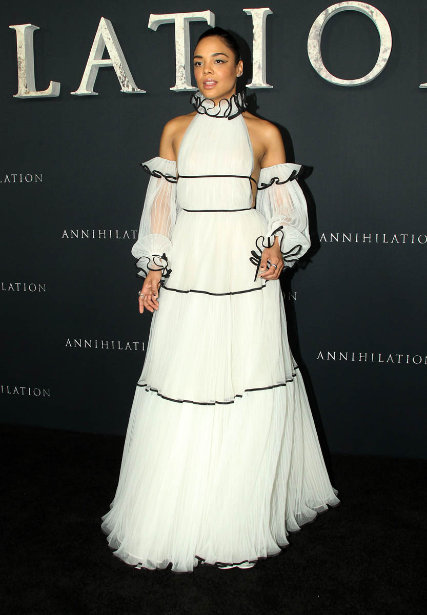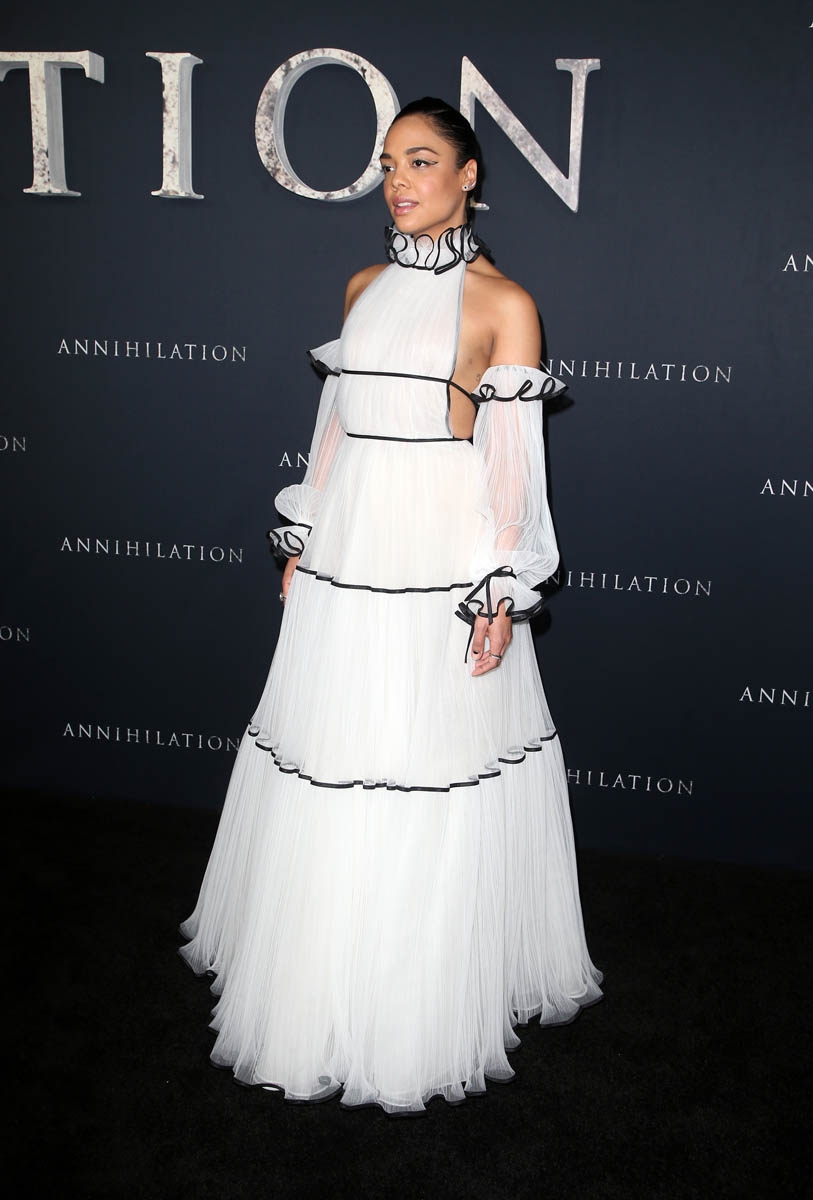 So, hours before the Annihilation premiere, news of Tessa’s amazing new role breaks and now the conversation is about that, not about how she’s promoting a movie that’s likely going to be a disappointing flop due to a messy rollout. If Annihilation lives up to its early hype (and some solid initial reviews) and is actually a good movie, we’ll just add it to the list of great movies already on Tessa’s resume. If it doesn’t land with audiences and suffers at the box office, Tessa is not going to eat it. Natalie Portman will likely take the hit. Tessa’s already on to the next one. I heard a couple snippets from her red carpet interviews last night and most outlets were asking her about Creed 2 or the Doris Payne biopic. The conversation surrounding Tessa Thompson today is all about Doris Payne. The timing of this news is too good to have been an accident. This was strategy – damn good strategy. When Lainey and I were emailing about this, she said she was impressed with Tessa’s team. This means Tessa and her team are meticulously managing her image and carving out a specific career path. YES. That makes me more excited than Annihilation ever did.