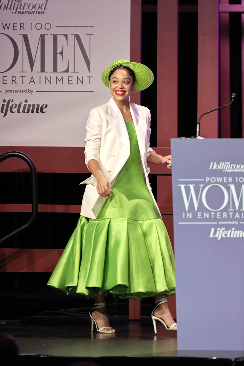 More photos from The Hollywood Reporter’s Women in Hollywood event last night and one of the standout looks on Tessa Thompson. And it’s official now, right? This is (at least) the third time we’ve seen Grinch green in the last three weeks – first on Gemma Chan, then on Gabrielle Union, and now it’s Tessa…so it’s a holiday season fashion trend.