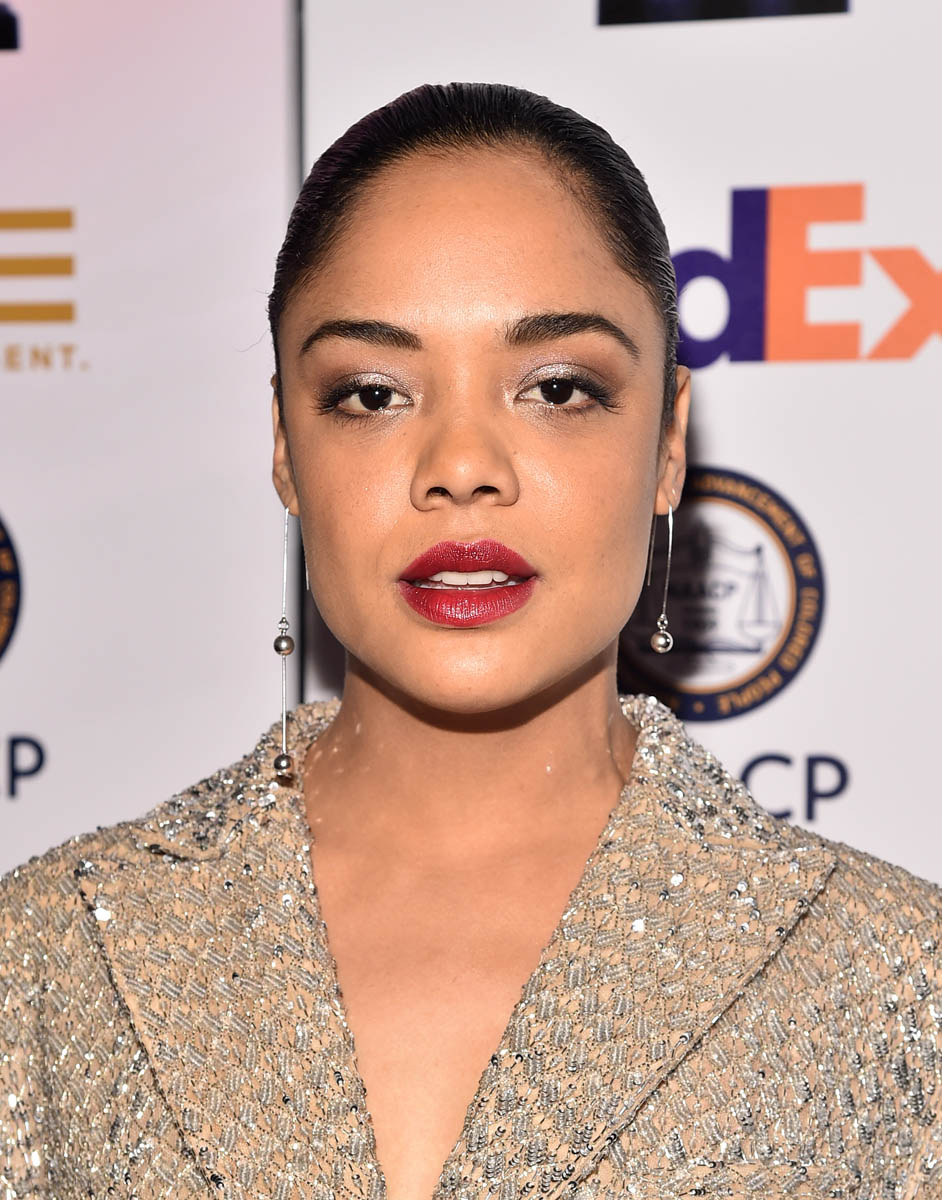There are a lot of things I love about this pantsuit on Tessa Thompson. First, this shade of champagne, or whatever you want to call it, is a great colour on her. Also, right now, I’m all about finding an all-sequin tuxedo for an upcoming event. So I’m really happy to see that they’re out there.