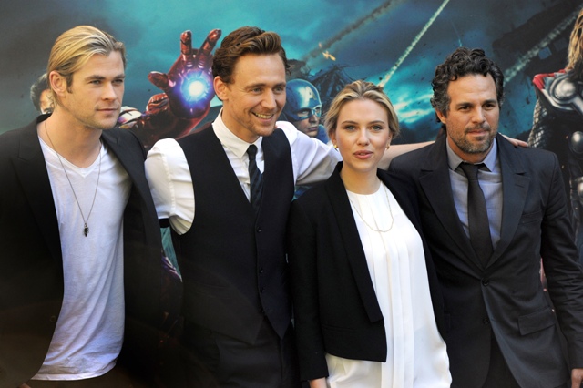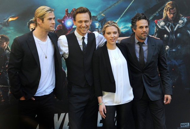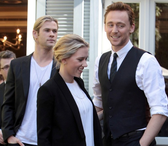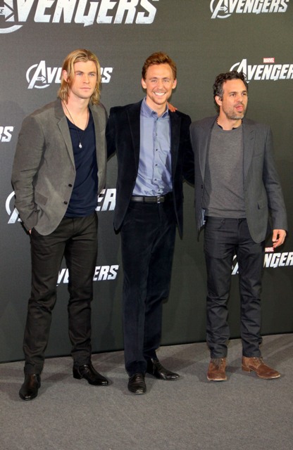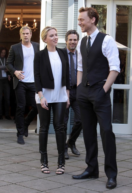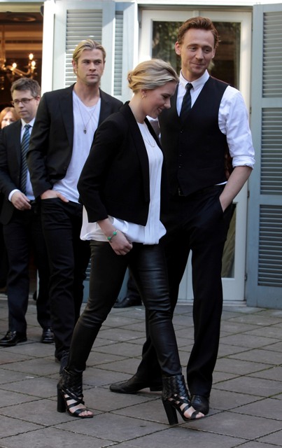 Here are some of The Avengers promoting the movie in Italy and Germany over the last few days. Hi Mark Ruffalo. I know I’ve been writing a lot about Tom Hiddleston lately but don’t you ever doubt that you are my one true love forever. So about Chris Hemsworth’s shag...true story - for months I tried to style mine like that in 1994, around the time of Reality Bites. As for Hiddleston, I like him so much better wearing just a shirt and waistcoat with the sleeves rolled up. Hot, right? What is it that I’m not feeling when he’s in a suit jacket?