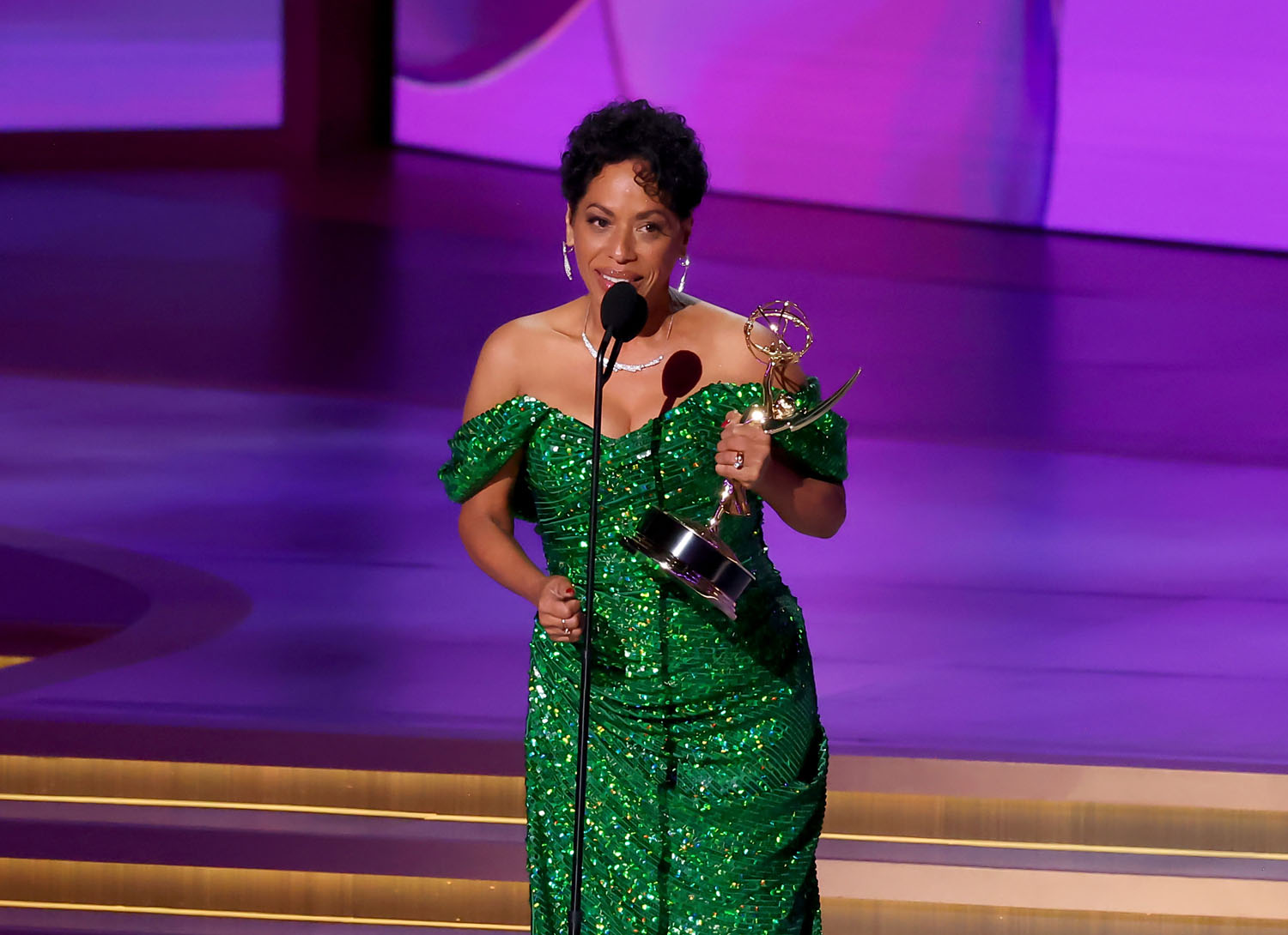 Maybe the best way to “fix” this is to introduce a “dramedy” category, though the television academy is loathe to create more categories for an already very full roster (it’s why they won’t split limited series from made-for-TV movies). The other way to “fix” it is just to not vote for The Bear, which is kind of what happened last night. They still won several Emmys, including for actors Ebon Moss-Bachrach, Jeremy Allen White, Liza Colón-Zayas (who wore an amazing Christian Siriano gown), Jon Bernthal, and Christopher Storer for directing the episode “Fishes”. But they notably lost the writing award to Hacks, Ayo Edibiri lost to Jean Smart for comedy lead actress, and they lost Outstanding Comedy Series to Hacks, too.