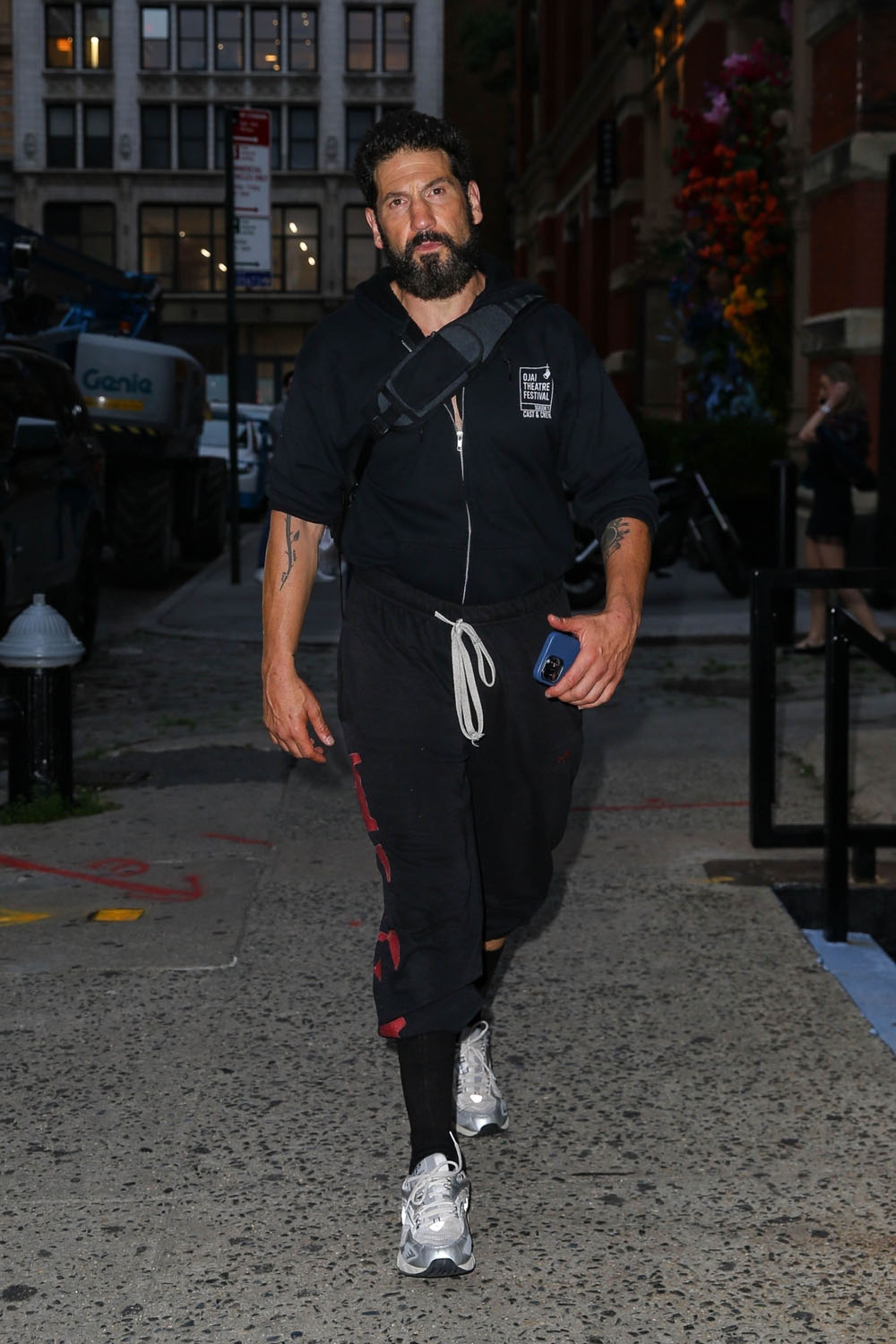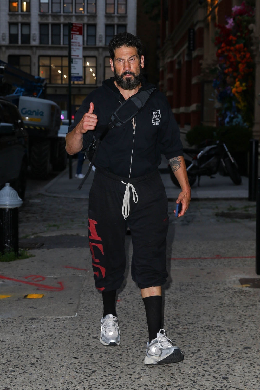 Here’s Jon Bernthal out in New York last night, probably one of the few people who can look this sexy with his black socks pulled up like that and his sweatpants at different lengths. I am both afraid of him and attracted to him and if I ever had to interview him I’m not sure how I would handle this combination of fear and lust.